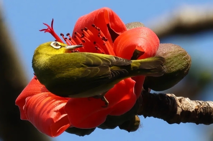 广州197岁古木棉,开出2026年第一朵花!