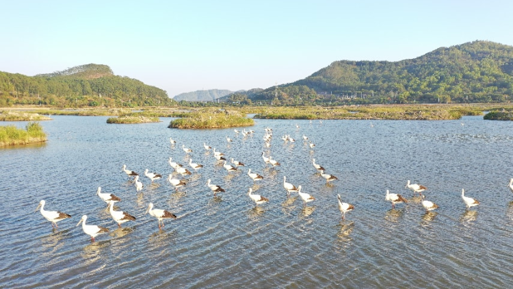 珍稀候鸟集群在海丰鸟类保护区“齐亮相”