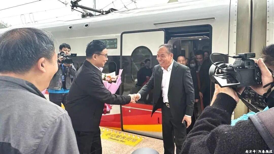 广湛高铁通车首日|列车满载桑梓情首抵阳春,家乡以深情礼遇喜迎游子