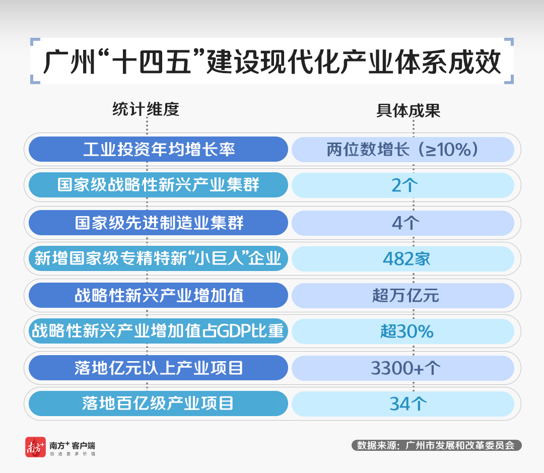 作为全国唯一拥有31个制造业大类的城市,广州产业生态的完整性让就业有了更丰富的选择。“十四五”期间,广州正在批量创造高质量的技术岗、研发岗和管理岗。