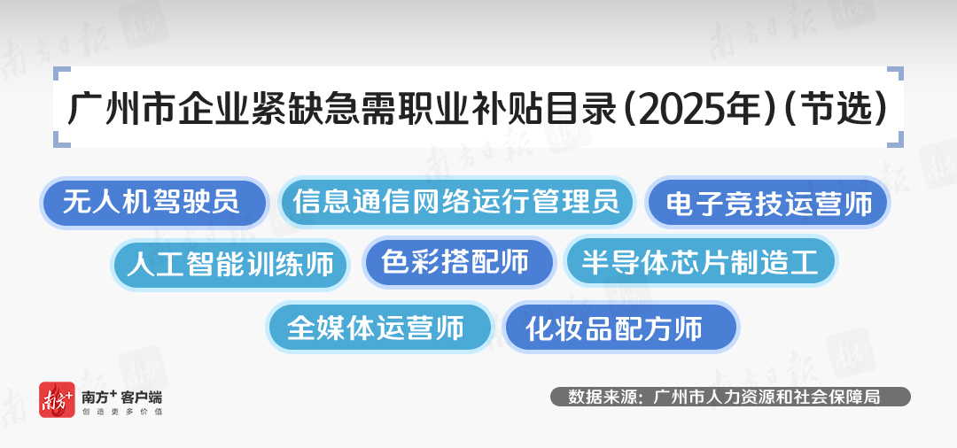 年初《广州市企业紧缺急需职业补贴目录(2025年)》发布,工业机器人系统操作员、人工智能训练师、健康照护师等84个职业紧缺,其中生产制造及相关岗位占比超55%,一定程度反映广州“两业协同”战略导向背后的人才支撑问题。