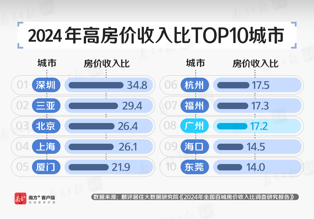 广州的17.2,不到深圳的一半,也明显低于北京上海。同样的收入水平,在广州能享受更高品质的生活体验。
