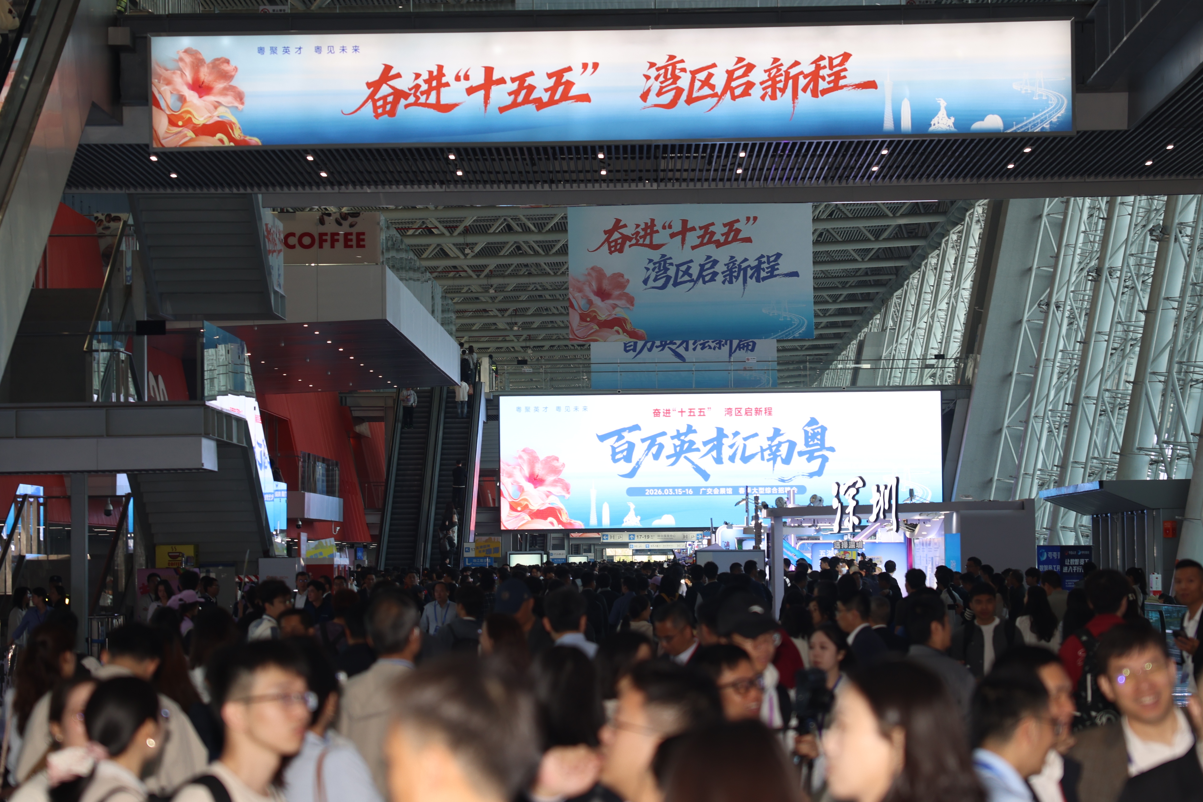 今天,“百万英才汇南粤”2026年大型春招在广交会展馆启幕,释放超7万个岗位,吸引全球青年才俊参与。