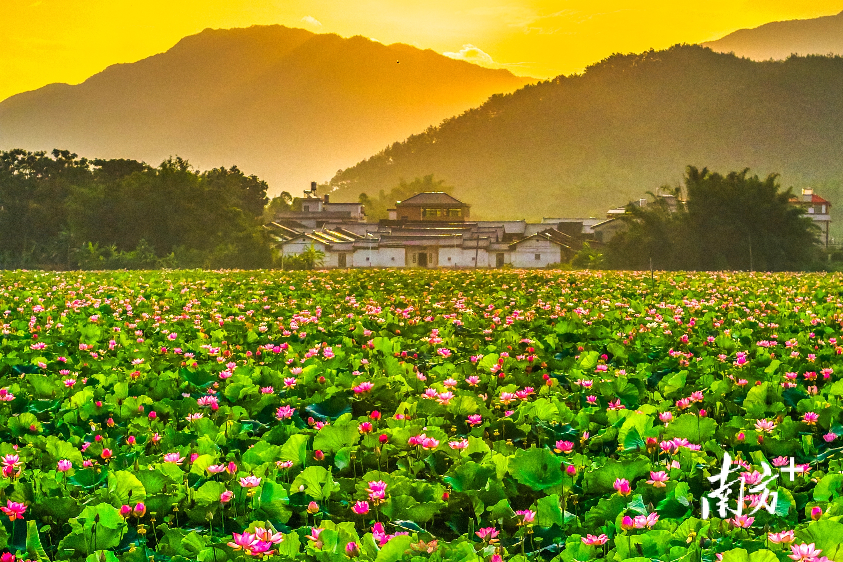 盛夏时节蕉岭三圳镇九岭村的十里荷花迎来盛花期(资料图片)。南方+记者 何森垚 摄
