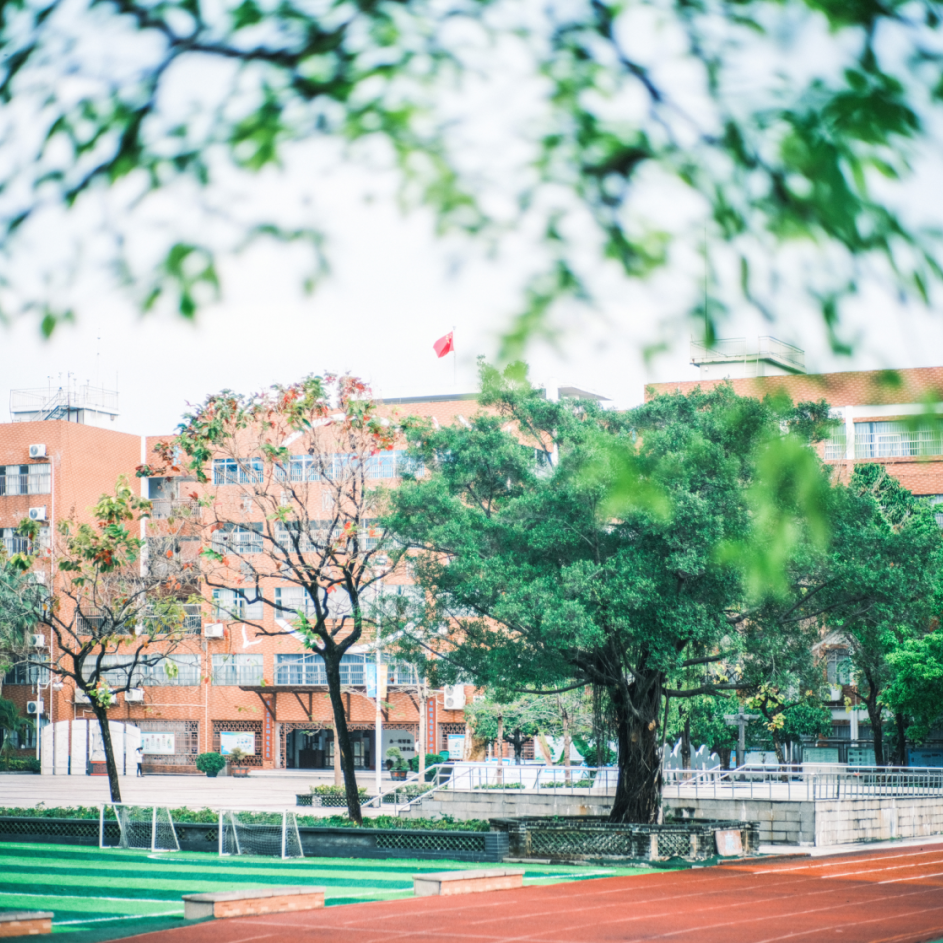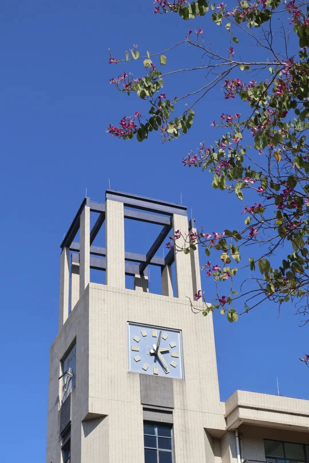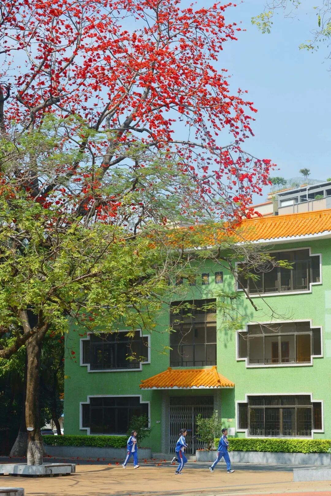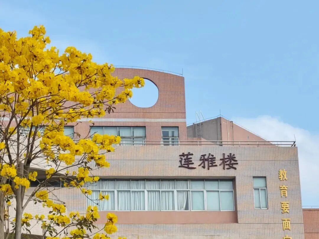 紫花风铃木在教学楼旁站成一排温柔,黄花风铃木把阳光穿在了身上,三角梅沿着围墙热烈地开着,一点也不害羞。