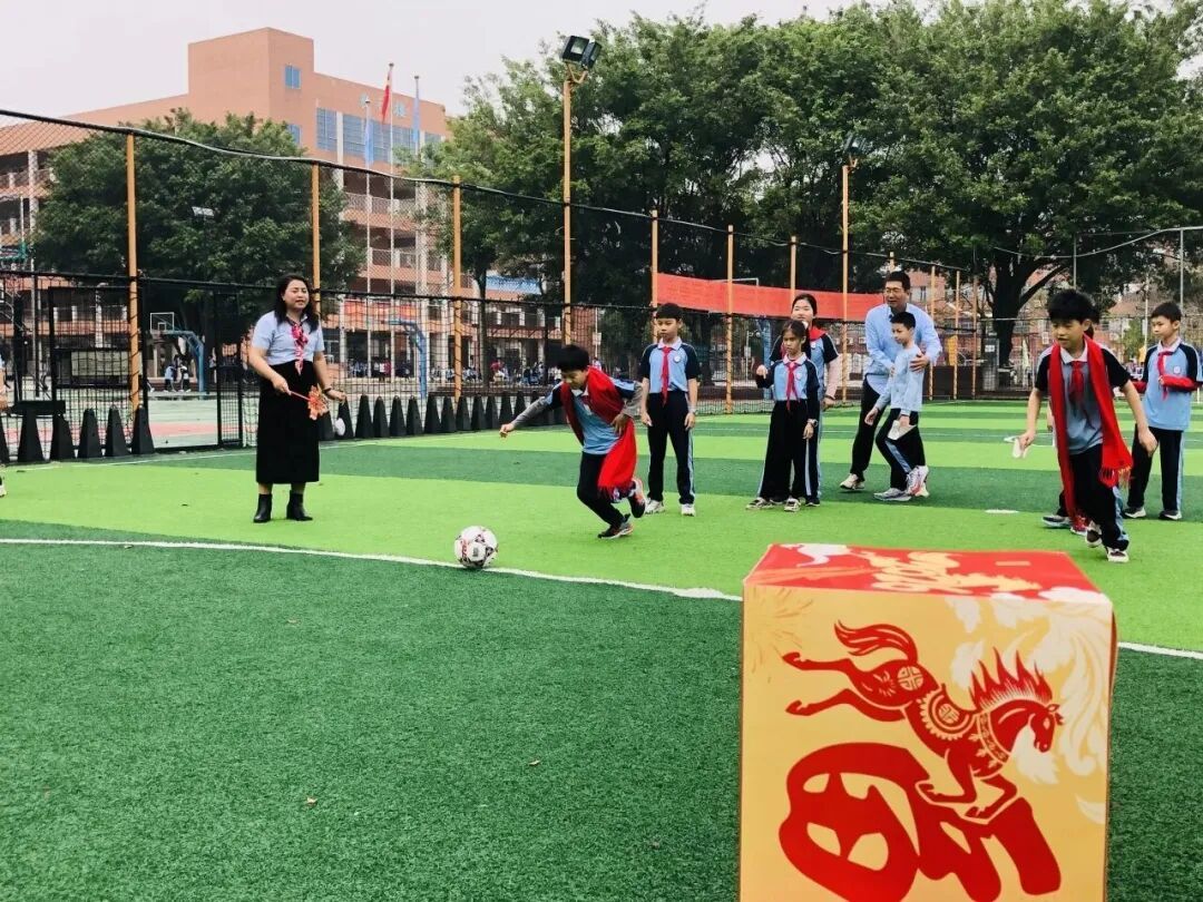 绿茵场上,孩子们追逐着滚动的足球,笑声和春风一起飞扬。