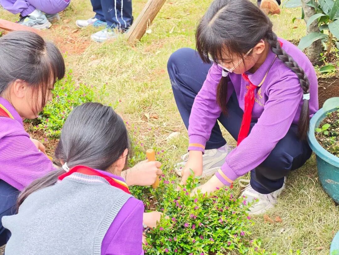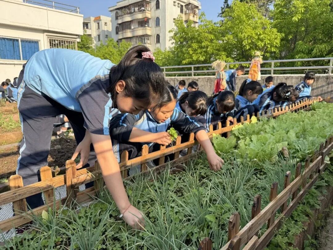 塘厦镇实验小学和第二小学的孩子们蹲在种植园,小心翼翼地把幼苗放进土里,小手沾满泥巴,脸上却笑得很开心。