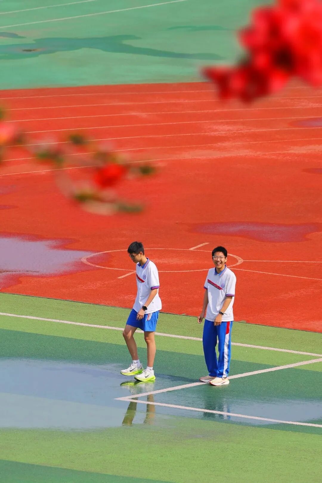 校道上,三三两两的身影慢跑而过,脚步轻快得像跳跃的阳光。