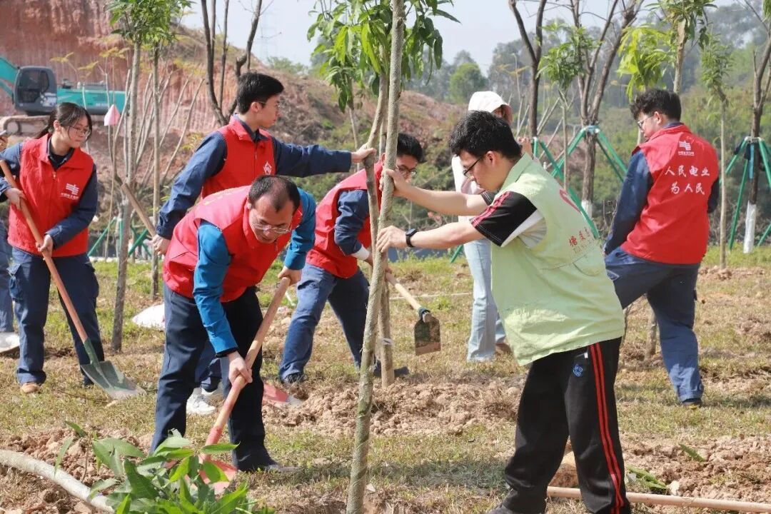 东莞中学和东莞市电子科技学校的师生挥着铁锹,一铲一铲培上土,格外认真。浇水、施肥、填土——他们亲手种下的,是这个春天最鲜活的注脚。