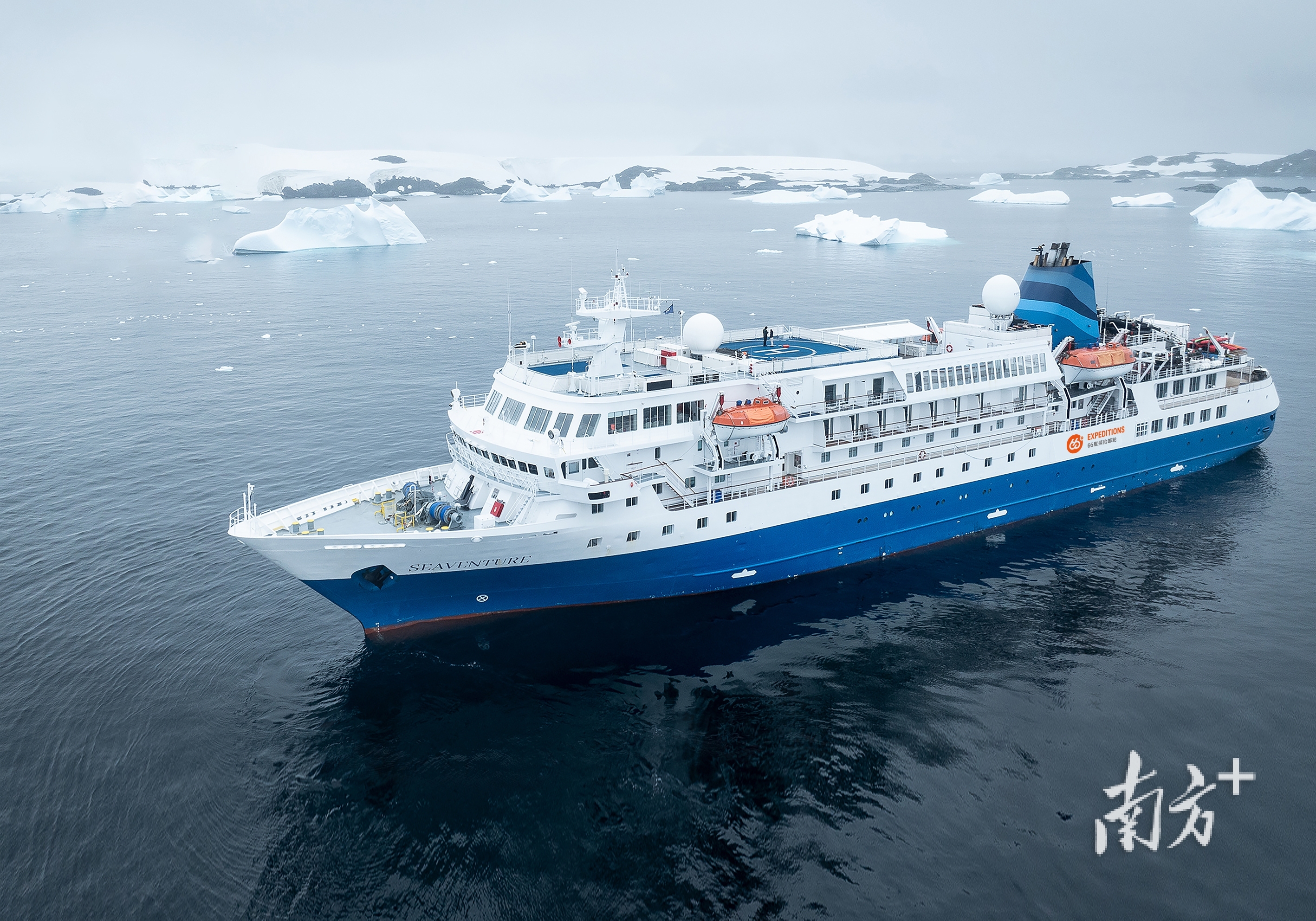 探险邮轮破浪前行。