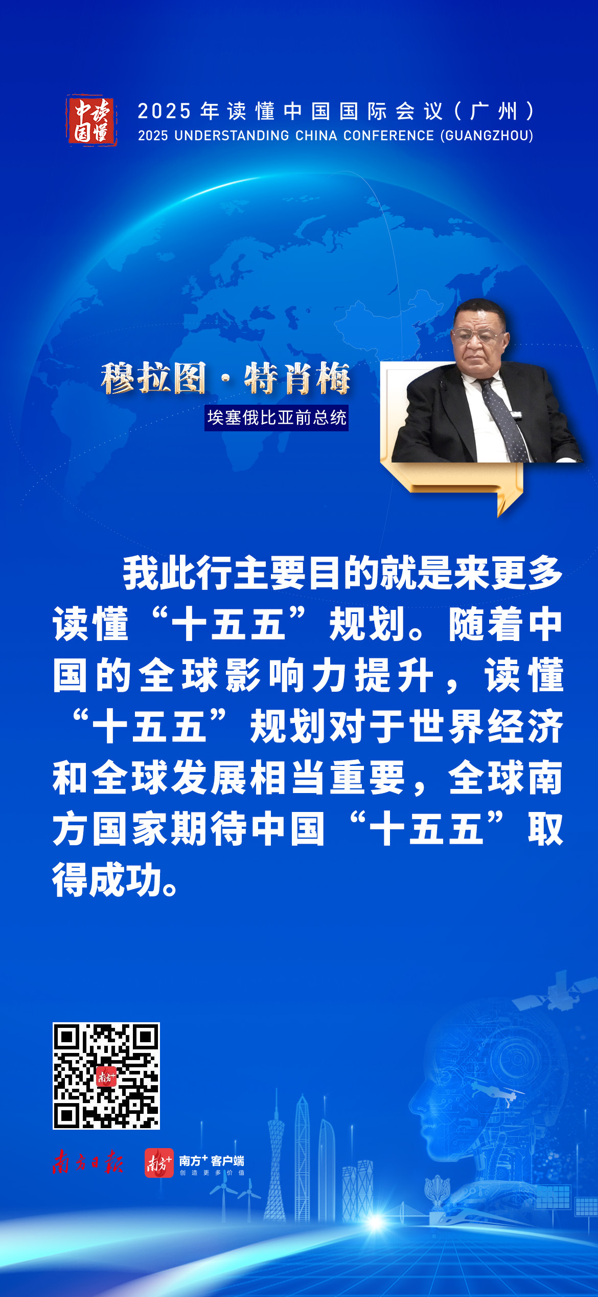 11月30日至12月2日,2025年“读懂中国”国际会议在广州举办。埃塞俄比亚前总统穆拉图·特肖梅在现场接受采访表示,自己见证了广州乃至中国改革开放的进程,期待在本次会议上读懂“十五五”规划,为全球南方国家寻找发展新机遇,“我们都期待中国‘十五五’取得成功,这对世界经济和全球发展意义重大。”