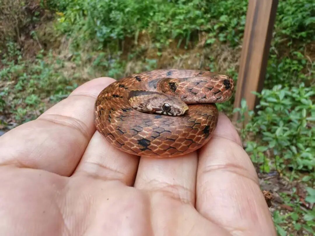 这一新物种是由志愿者最先发现的。今年6月底,佛山两名自然爱好者作为南岭国家公园候选区首批志愿者,经培训后在天井山片区考察。次日意外发现特殊小蛇,拍照传给专家团队,后采集标本移交,经初步判断可能是蛇类新种。