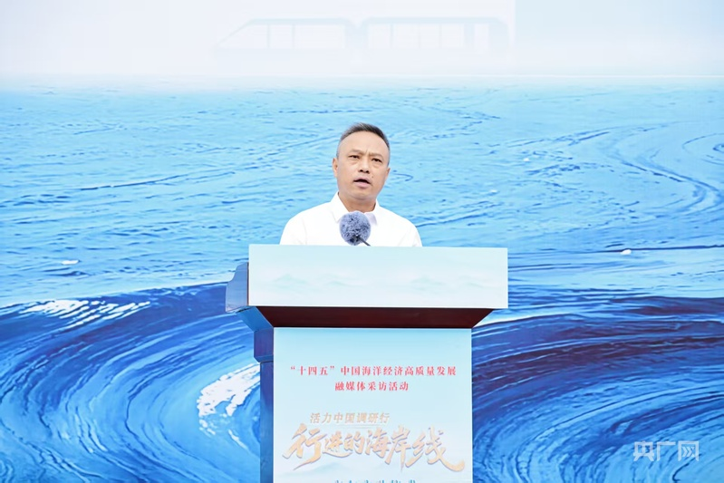 张军在致辞中表示,此次“行进的海岸线”大型融媒体采访活动,是央广网落实中宣部“活力中国调研行”的重要举措,也是国家媒体服务海洋强国战略、记录海洋经济发展的责任担当。本次活动以行进式、体验式、观察式报道为特色,央广网组织15个沿海地方频道的骨干记者,沿着中国海岸线深入挖掘海洋产业、海洋科技、生态文明等领域的实践成果,讲述海洋经济高质量发展的中国故事。截至目前,活动已走访辽宁、河北、天津、山东、江苏、上海、浙江、福建等地,推出一大批接地气、有温度的报道,被500多家主流媒体、商业平台转载转发,引发广泛关注。