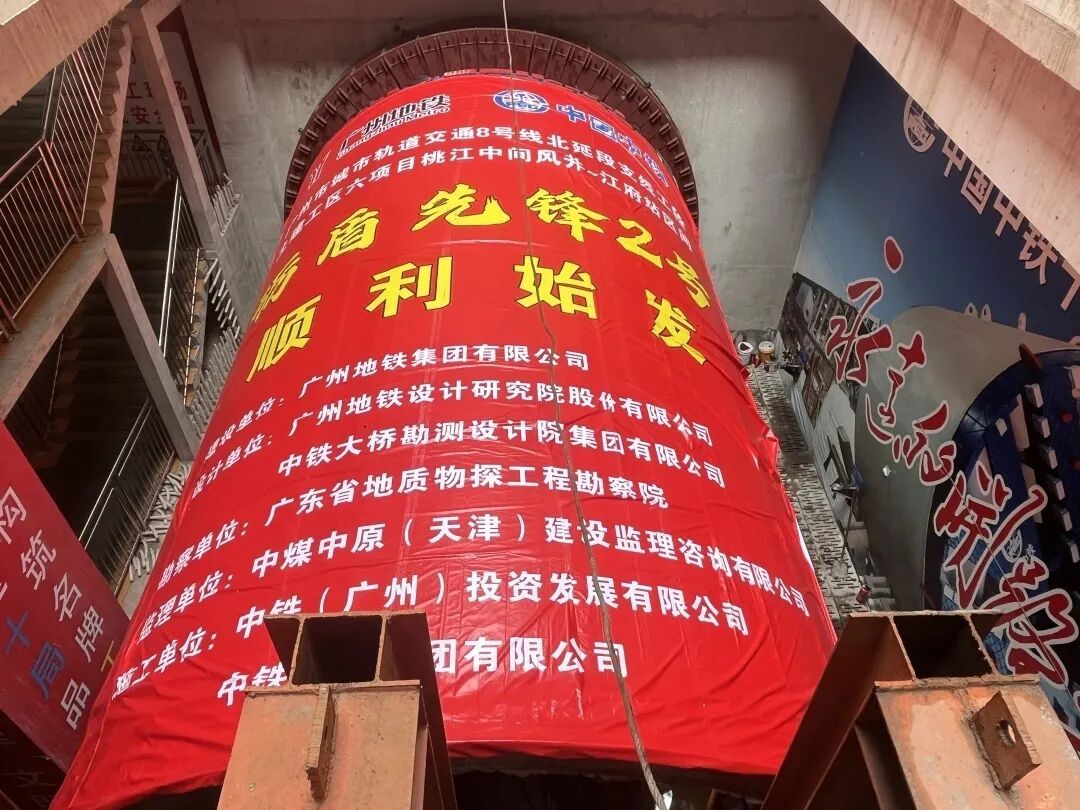近日,广州地铁八号线北延段支线(江府-纪念堂)建设完成两项重要节点:桃江(桃源至江府区间)中间风井至江府区间(以下简称中江区间)右线盾构顺利始发、全线最大车站江府站基坑底板实现封底,标志着线路建设取得阶段性进展。