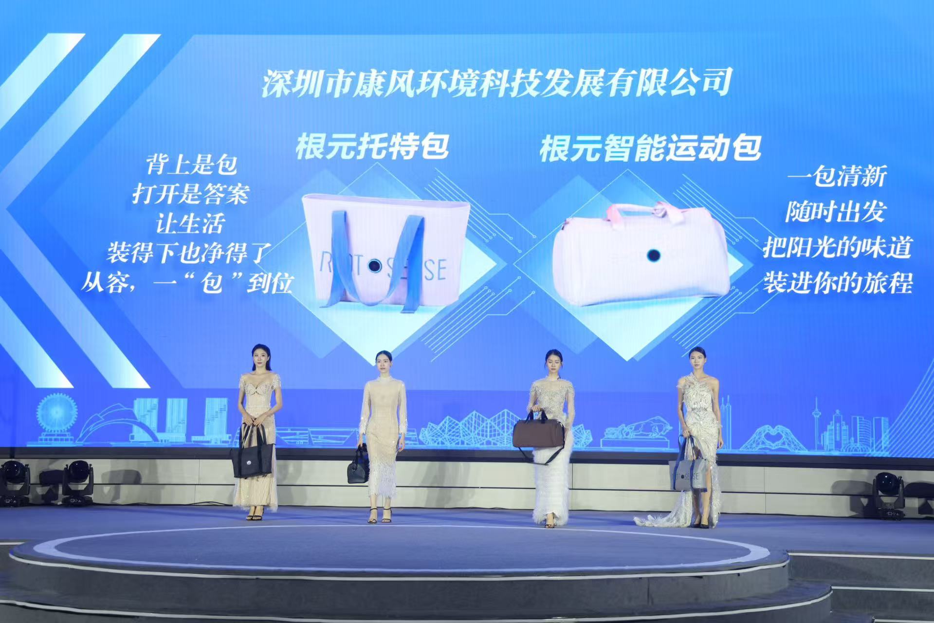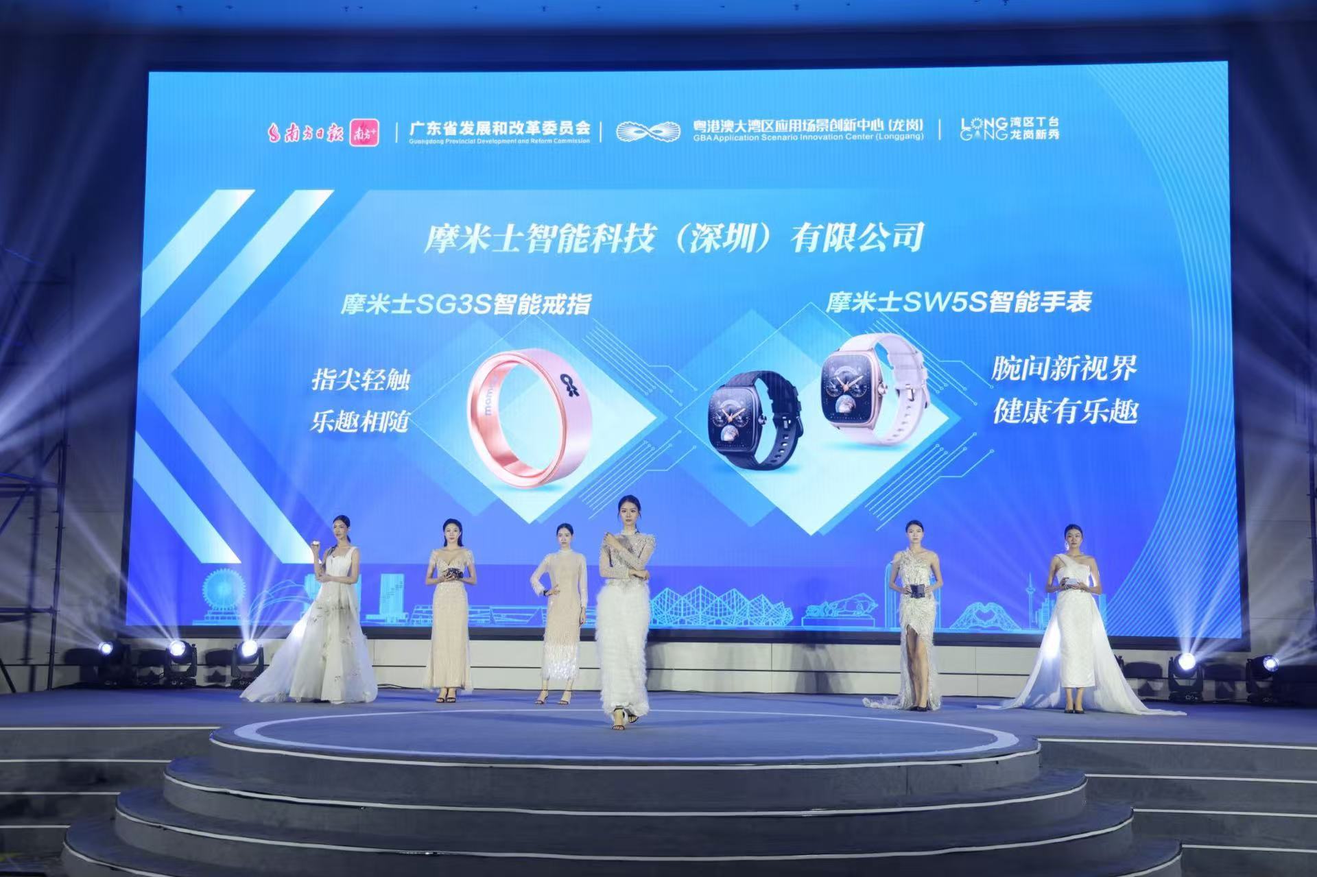 小物件蕴藏大技术。集情绪监测、智能触控助手等功能于一体的智能戒指,具备AI识别和拍照的望眼镜、出口100多个国家的充电宝以及能除菌除味的托特包等龙岗“神物”也通过展示员的展示,在舞台上熠熠生辉。