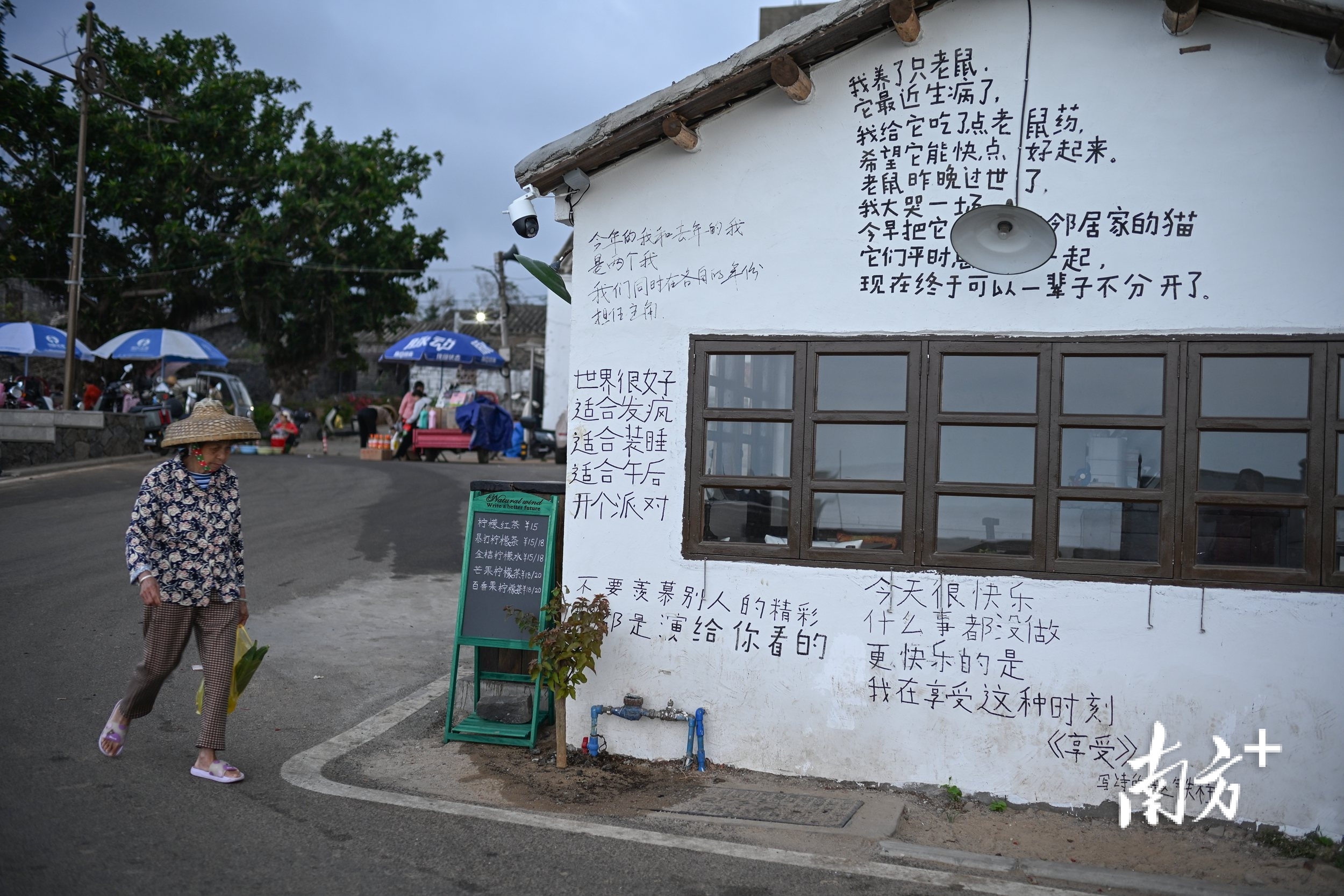 2025年3月29日,海边简易寮屋变成小卖部,墙体成为游客抒情的纸张。