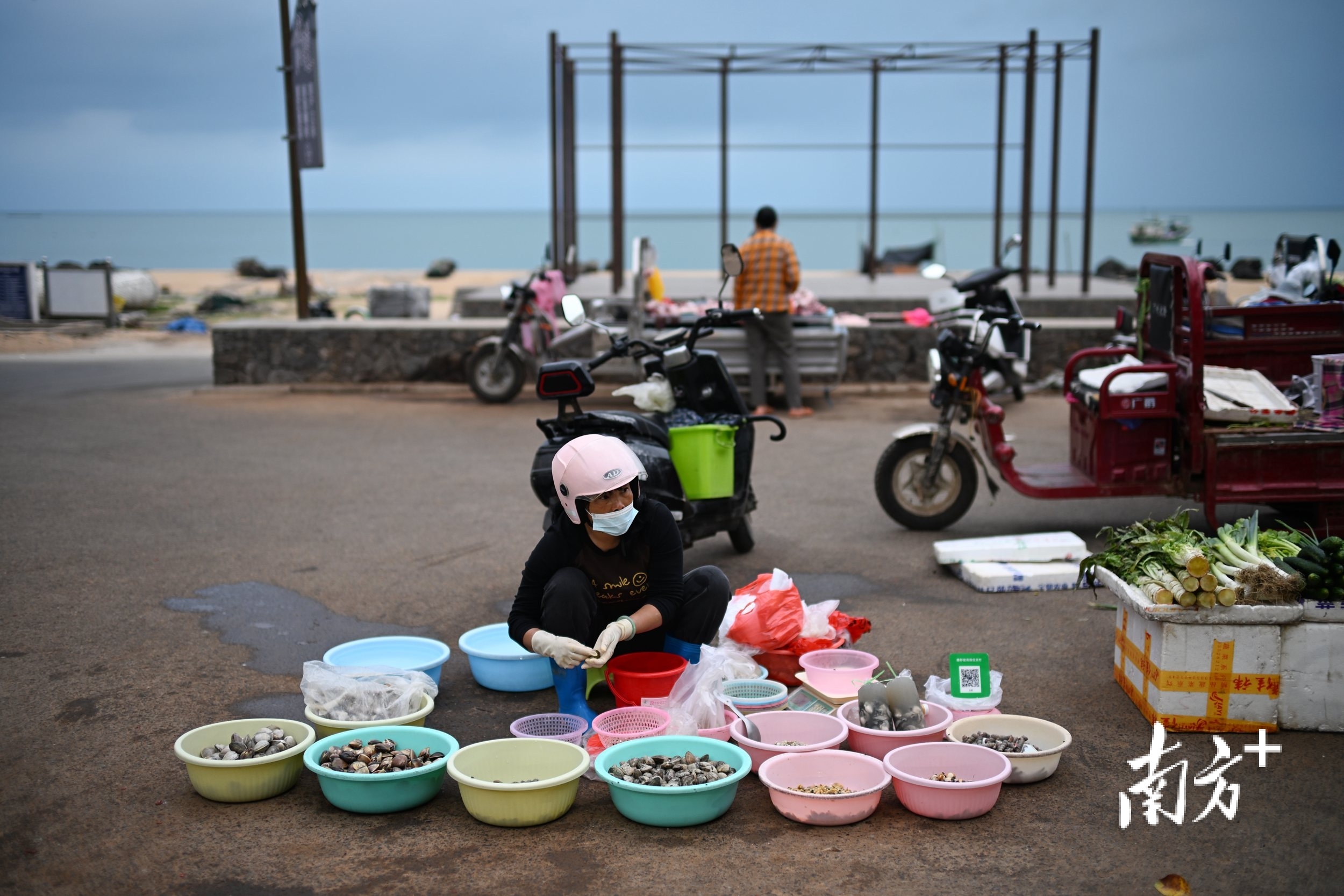 2025年4月4日,早上渔民将渔获挑到村中心再用车运到市场卖。