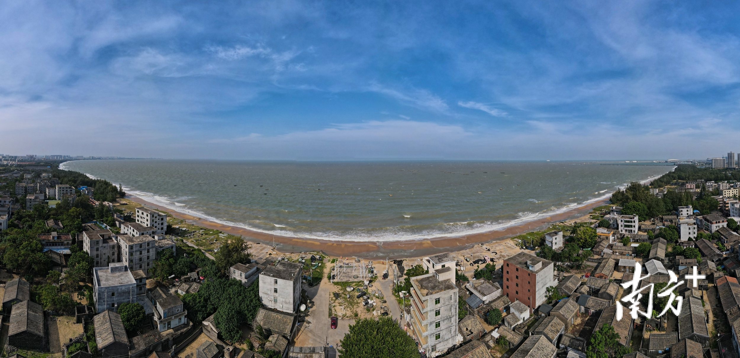 2022年10月31日,荣山寮村全貌和坐南朝北面对的琼州海峡。