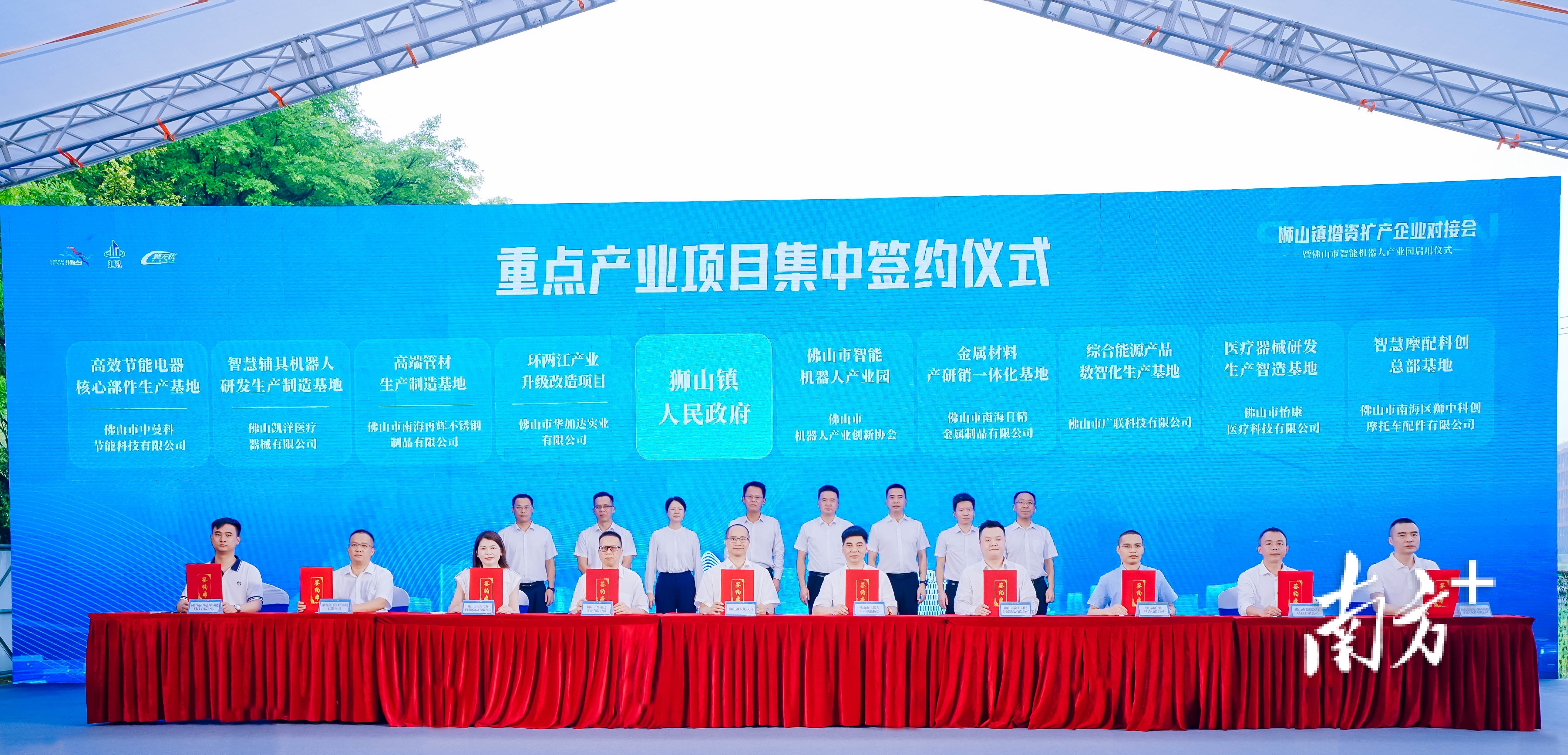 8月4日,狮山镇增资扩产企业对接会上,9个重点产业项目集中签约,总投资额达60亿元,涵盖智能制造、新能源、新材料等战略性领域。