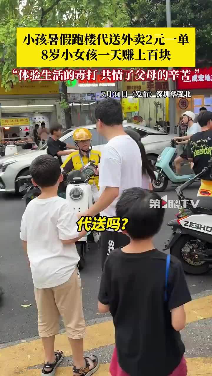 华强北小孩暑假跑楼代送外卖2元一单,8岁小女孩一天赚上百块