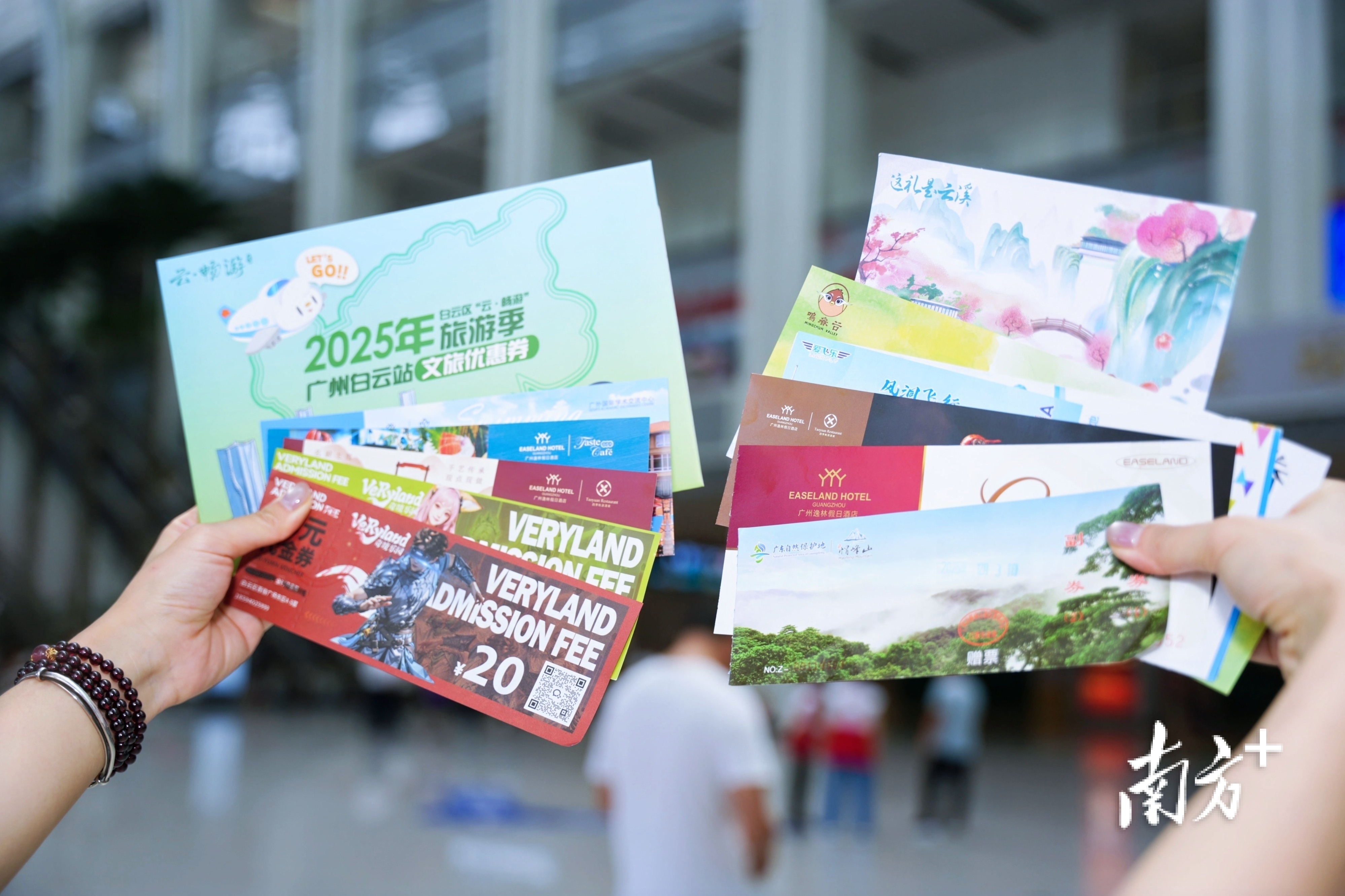 此次活动,白云区文化广电旅游体育局联合白云区枢纽管理办公室,首次在白云站云畅游快闪集市派发100份白云区景区景点优惠券包,开展文旅+枢纽宣推路径拓展的新尝试。来广州出差的黄先生很兴奋表示:很幸运能抽中大奖,券包非常丰富,包含有帽峰山、云溪植物园、鸣春谷、白云湖水社桨板俱乐部、白云湖游船、优爱飞乐风洞、百信VR乐园、逸林假日酒店等一大批白云区好玩的景点优惠券,自己是一名桨板爱好者,这次一定要安排时间去白云湖的水社桨板俱乐部好好体验下。