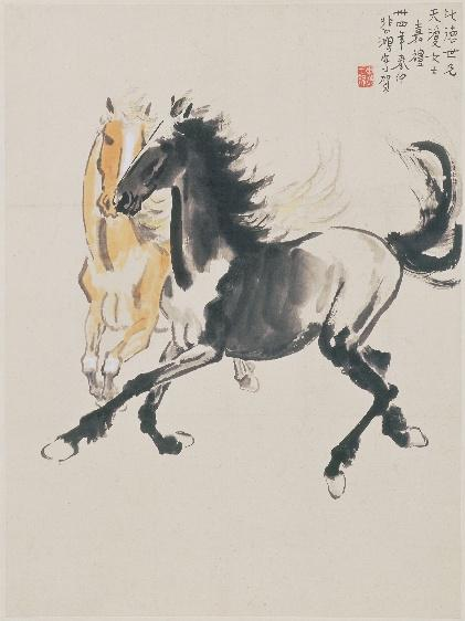 徐悲鸿作品《双马图》现正在香港故宫文化博物馆中展出。图片由故宫博物院提供