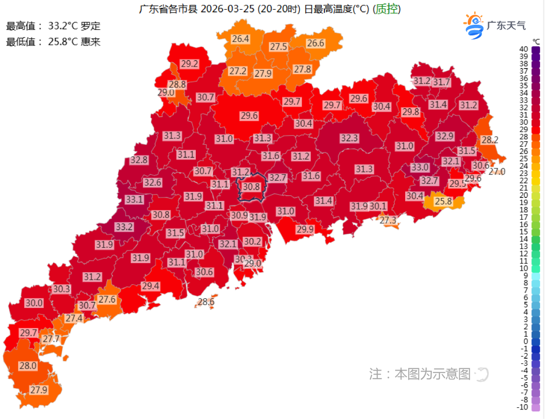 昨晚您被蚊子吵醒了吗?广东多地陆续入夏,气温升高,蚊子也越来越活跃。昨天(3月25日)白天,广东省大部市县最高气温比前一天普遍上升,其中肇庆大部、云浮、阳江、茂名北部市县上升了4~7℃,其余市县上升了1~4℃,云浮罗定录得全省最高气温33.2℃。
