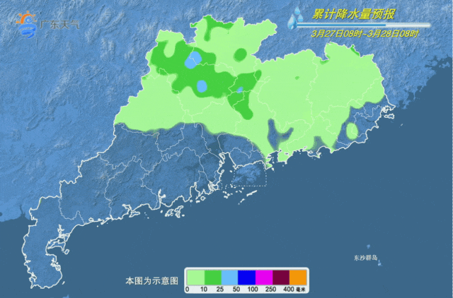 27日开始,广东降水将趋于频密,雨势趋于明显。