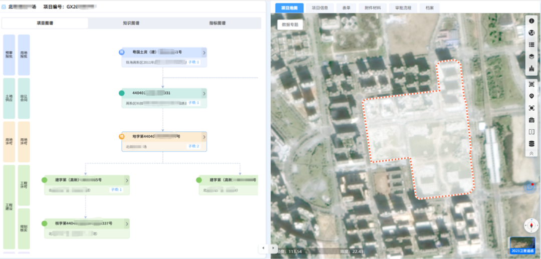 面向开发利用与用途管制等关键业务场景,以项目全生命周期管理为目标,以业务治理和数据治理为支撑,建立串联“预审(选址)—报批—供应—用地—工规—验收”等六个环节的“链治理”业务数据实体,形成业务知识图谱,实现任意业务环节项目全生命周期信息的串联共享,提升数据服务效能。
