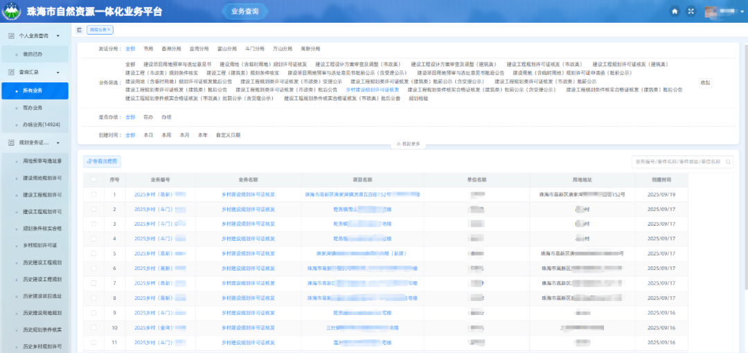梳理地政(21事项)、林政(9事项)、矿政(5事项)、测绘(3事项)、执法等核心业务的审批规则,集成用地报批、批后监管、土地供应、耕地保护等业务台账,实现自然资源全业务口径“一网办理”。平台上线以来,累计办理业务15523件,签发电子证照共3986个。