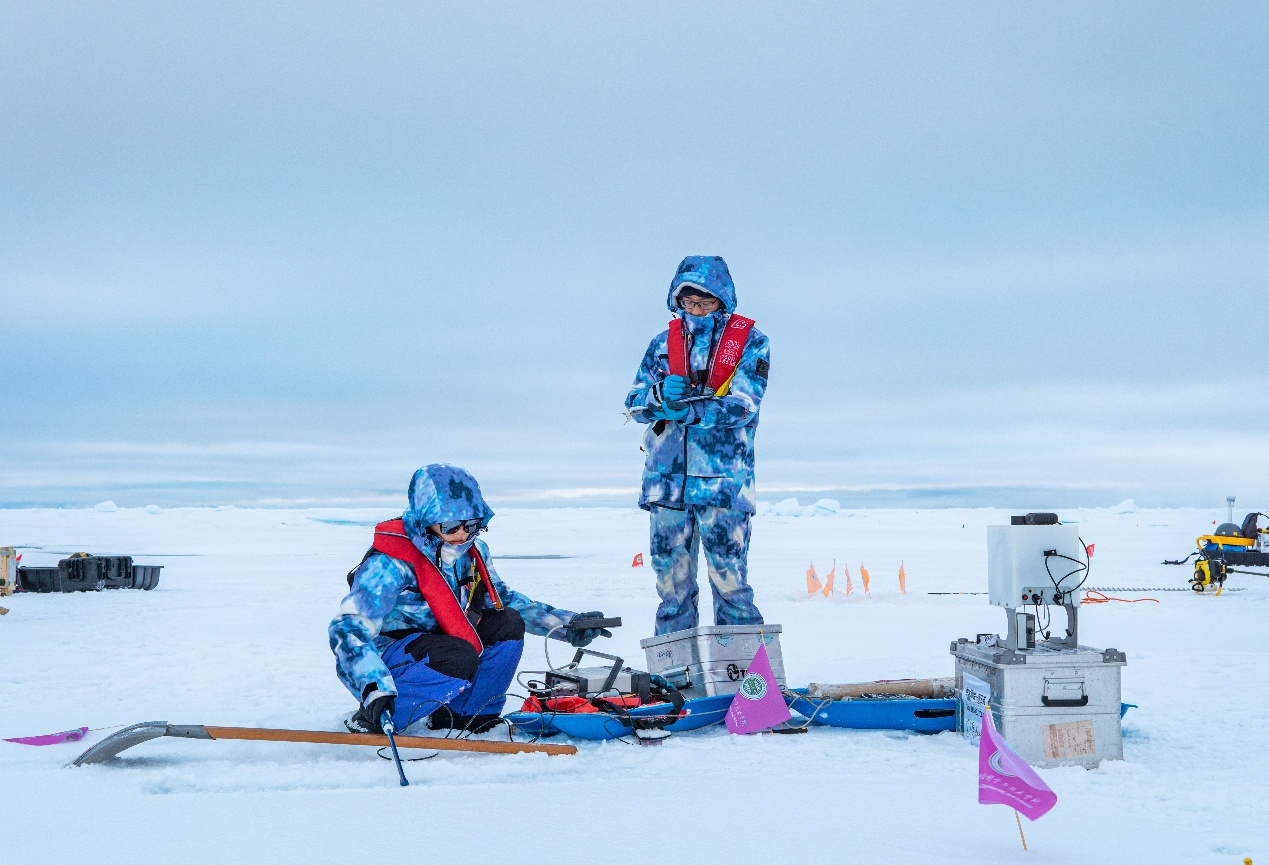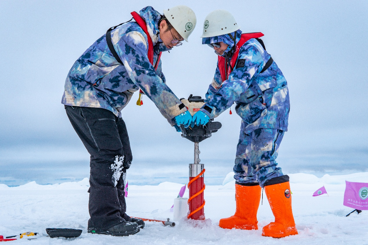 中国海洋大学博士生王雅文对此也感受深刻。“在第5个冰站,我们发现海冰厚度达1.8米,因此不得不先使用1.2米的冰钻穿透,再接上延长杆继续作业,非常耗时。”她说,仅钻孔环节就花了整整40分钟。