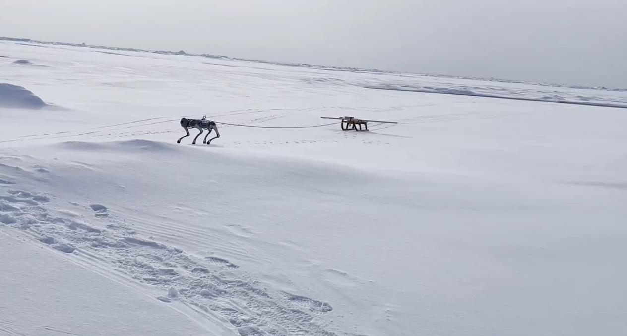 机器狗拖曳冰雷达进行自动测线。李博供图