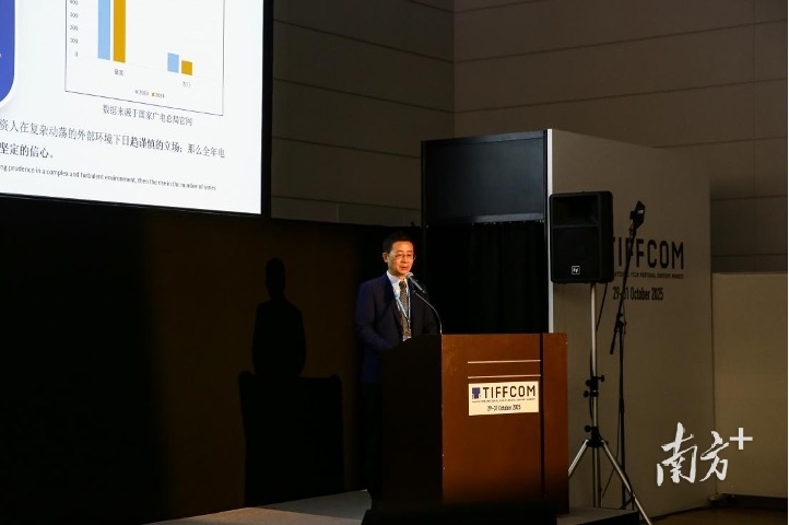 论坛上,来自北京大学艺术学院的陈旭光教授发表了题为“2025年度中国电影蓝皮书暨文化地形图:产业与艺术”的主题演讲。他以2024年度十大影响力电影为案例,从产业、艺术与技术等多维度,探讨了中国电影的创新路径、AIGC技术赋能下的产业升级趋势以及中外、中日影视合作的新可能。
