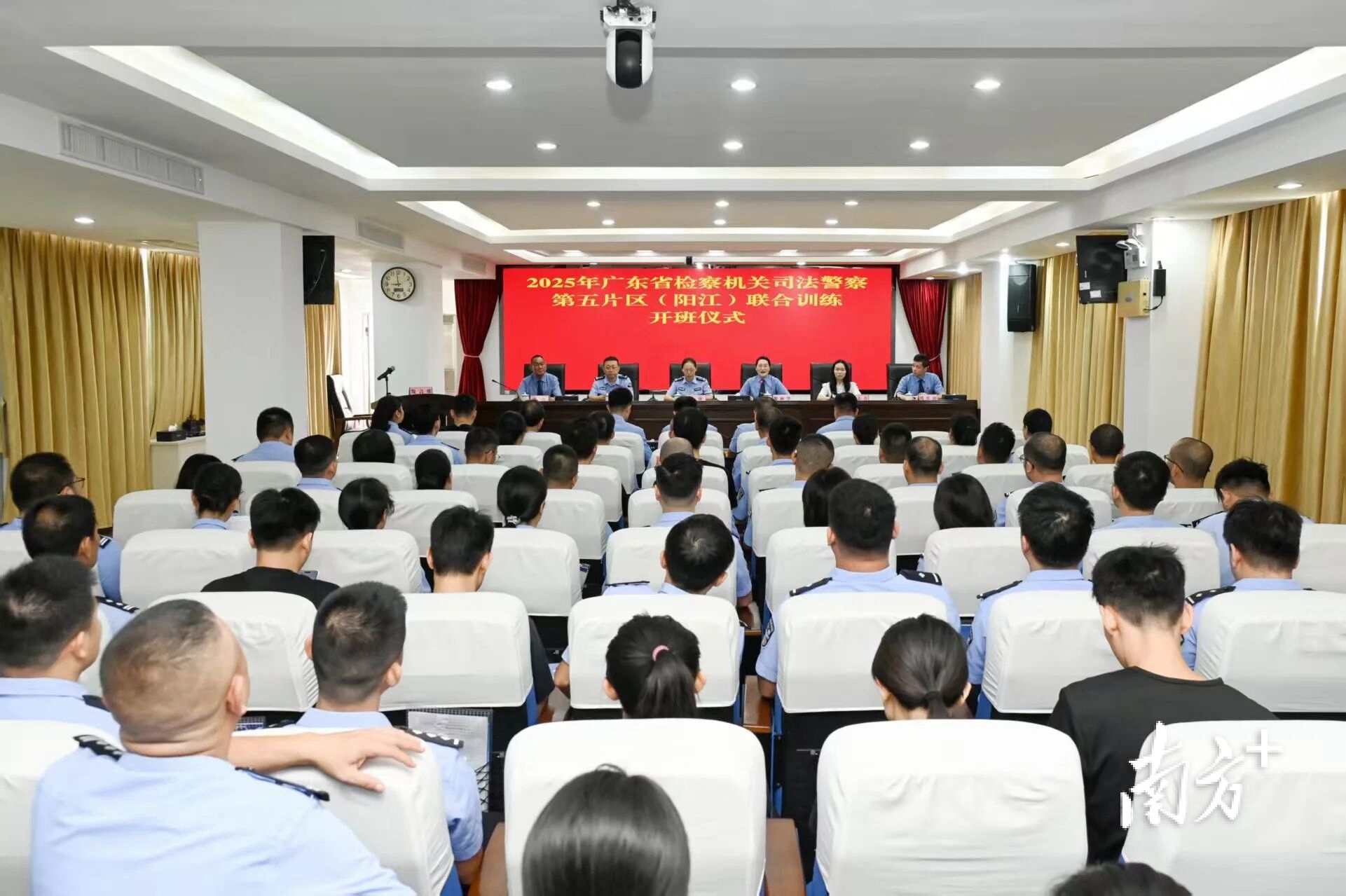 近日,广东省检察机关司法警察第五片区联合训练在阳江举办,来自阳江、湛江、茂名、江门、云浮五市检察机关93名司法警察及辅警参加集训。省检察院司法警察总队副总队长李萍出席开班仪式并作动员讲话,阳江市检察院党组成员、副检察长黎秋华主持开班仪式。