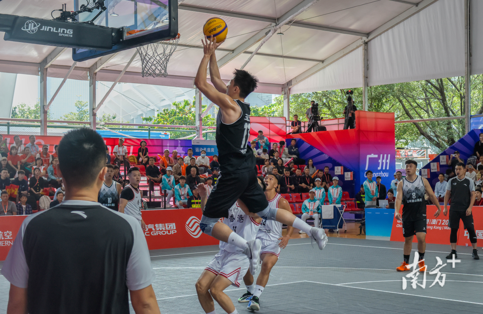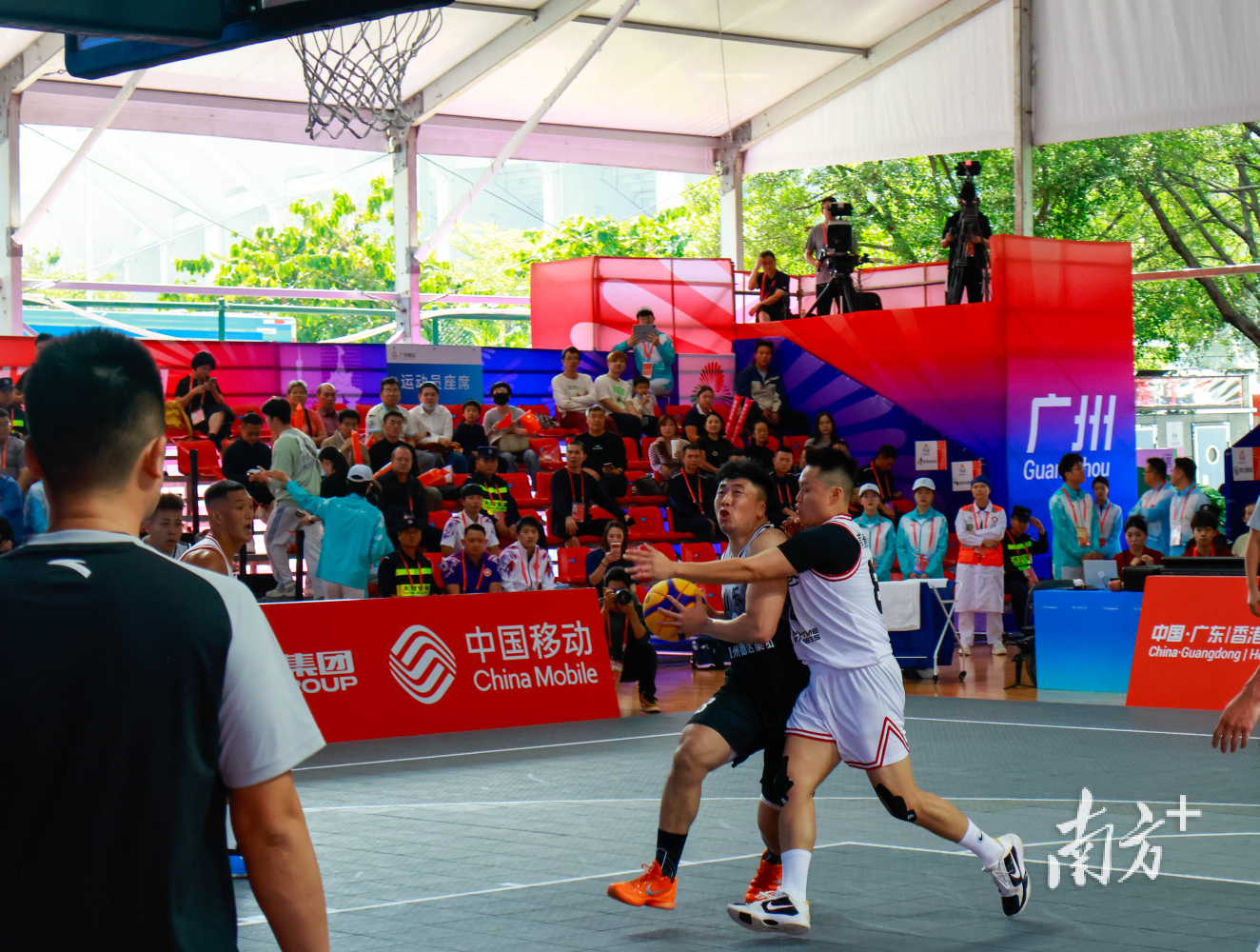 香港三人男篮(白衣)在小组赛中对阵山东队。