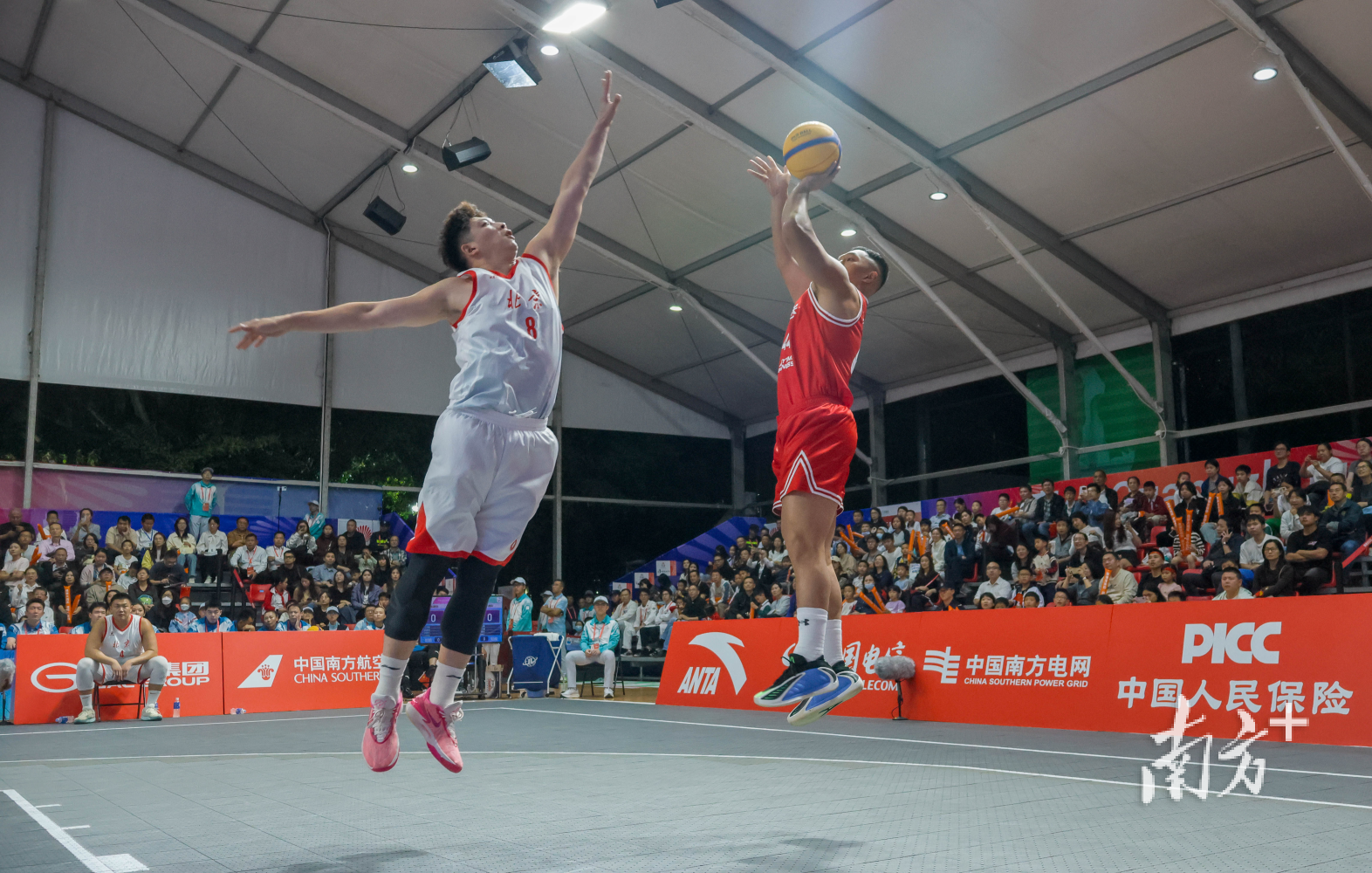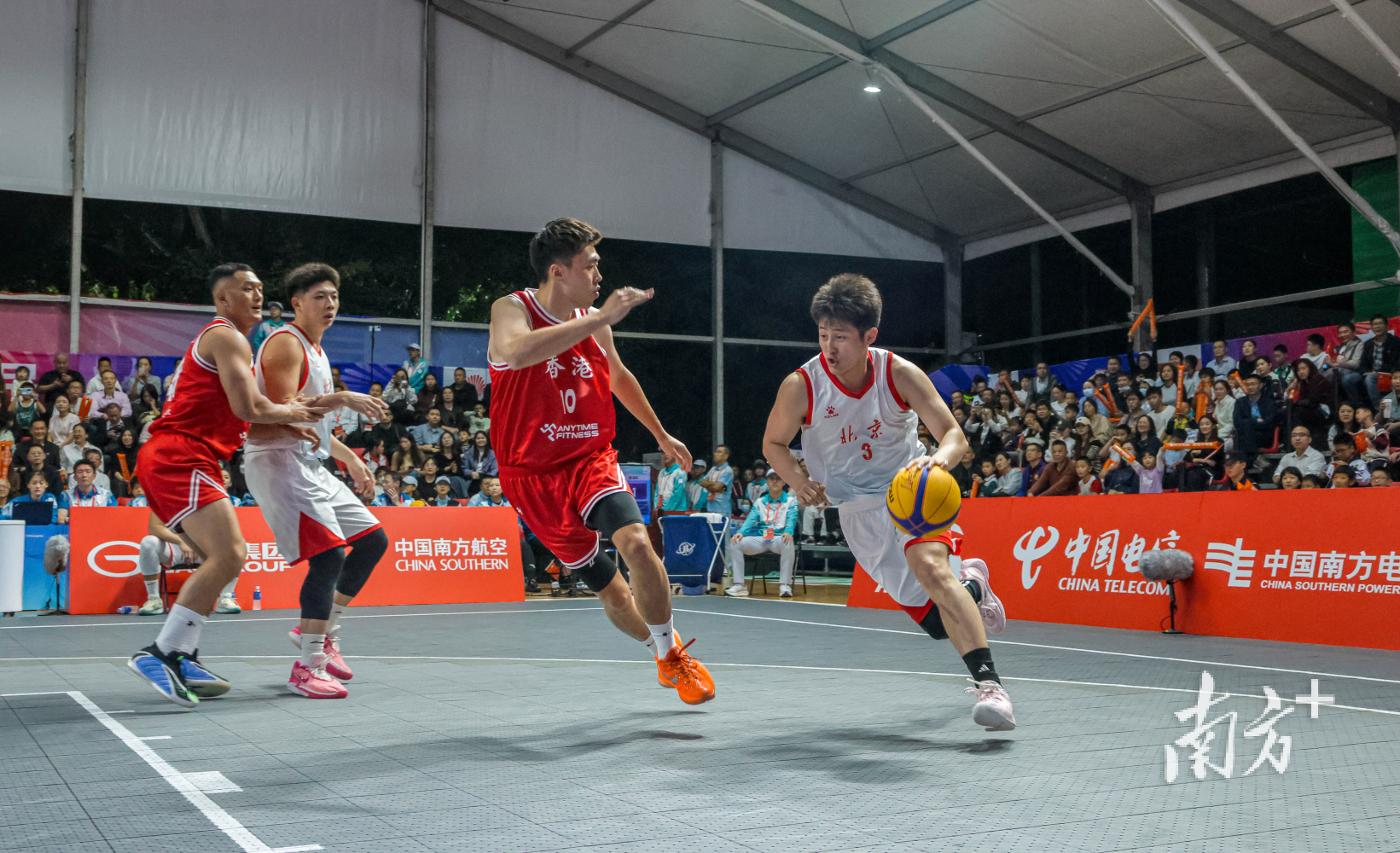 香港三人男篮(红衣)在小组赛中对阵北京队。