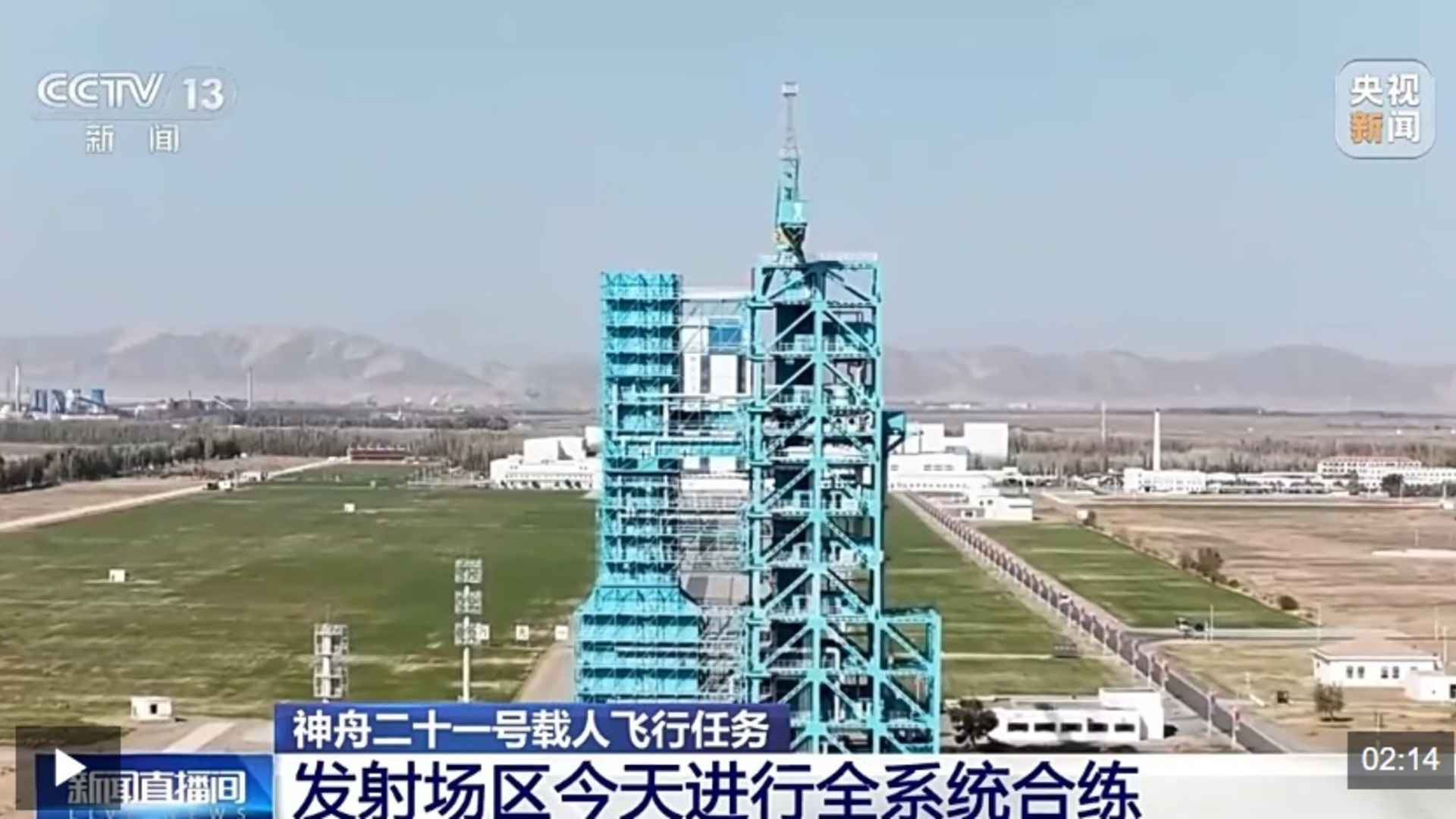 神舟二十一号船箭组合体已于本月24日转运至发射区,计划于近日择机发射。今天(10月27日),发射场区组织各单位展开全系统合练。