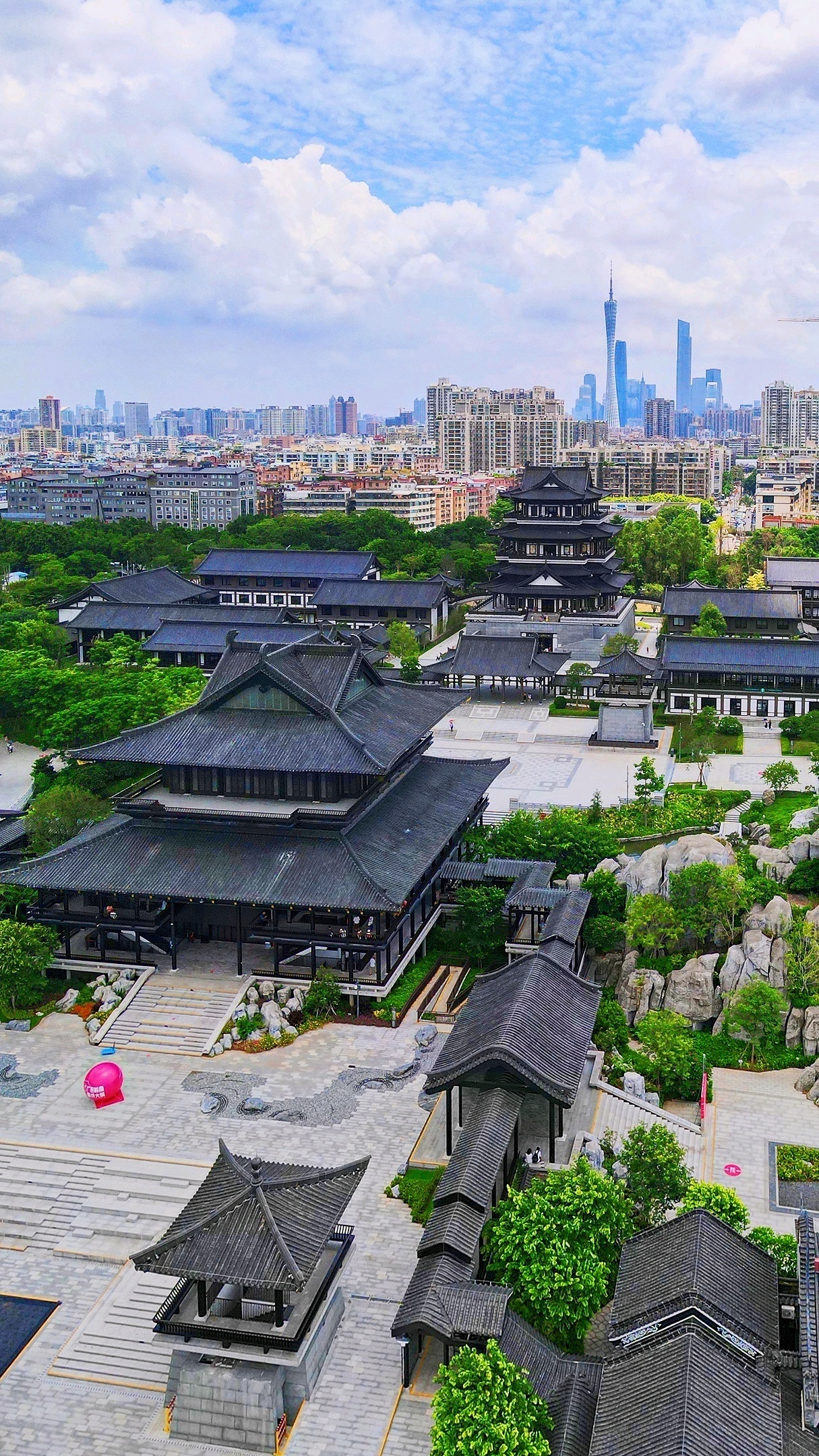 馆内最具标志性的建筑中心阁,高约39米,与广州塔遥相呼应。