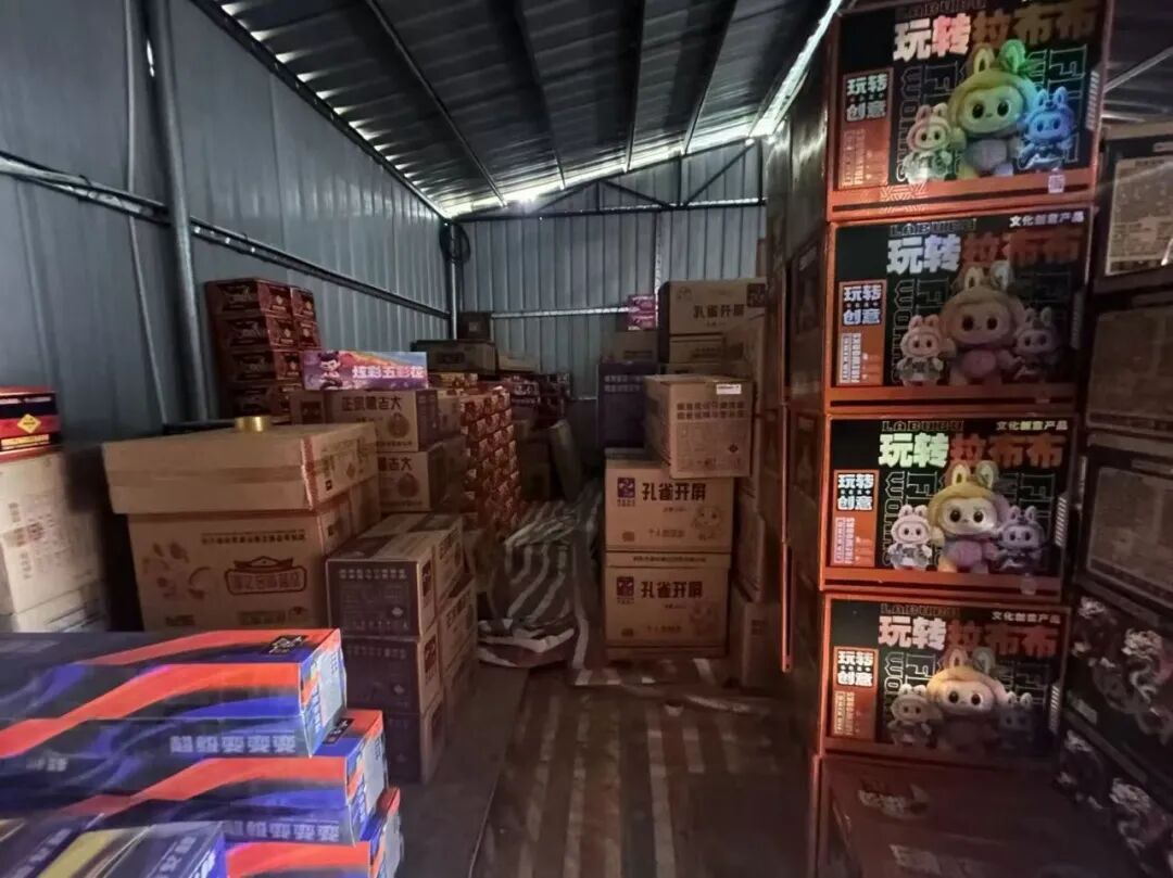 当晚行动中,执法人员精准排查,先后在霄边社区一出租屋、长盛社区一香烛店内,发现非法存放的烟花爆竹。经查,两处场所均未依法取得烟花爆竹经营、储存相关许可资质,未落实任何安全防护措施,且紧邻居民区,有较大的安全风险。经现场清点,共查获C类烟花共391箱。目前查获的烟花爆竹以及相关人员已按程序移交公安机关查处。