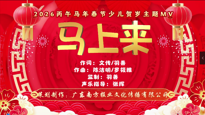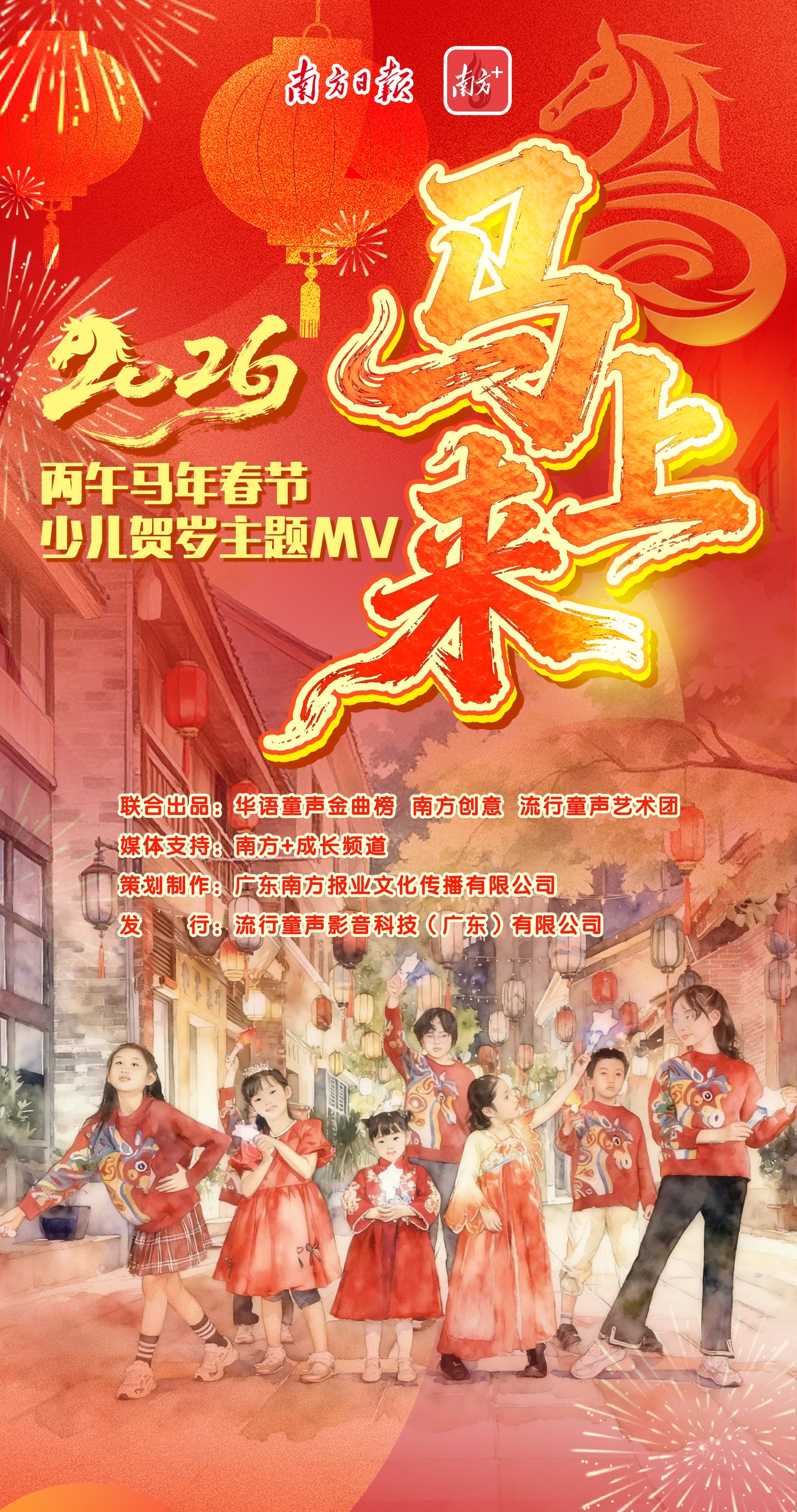 在这辞旧迎新的美好时刻,南方+成长频道联合华语童声金曲榜、南方创意及流行童声艺术团,倾力打造2026丙午马年春节少儿贺岁主题MV——《马上来》!