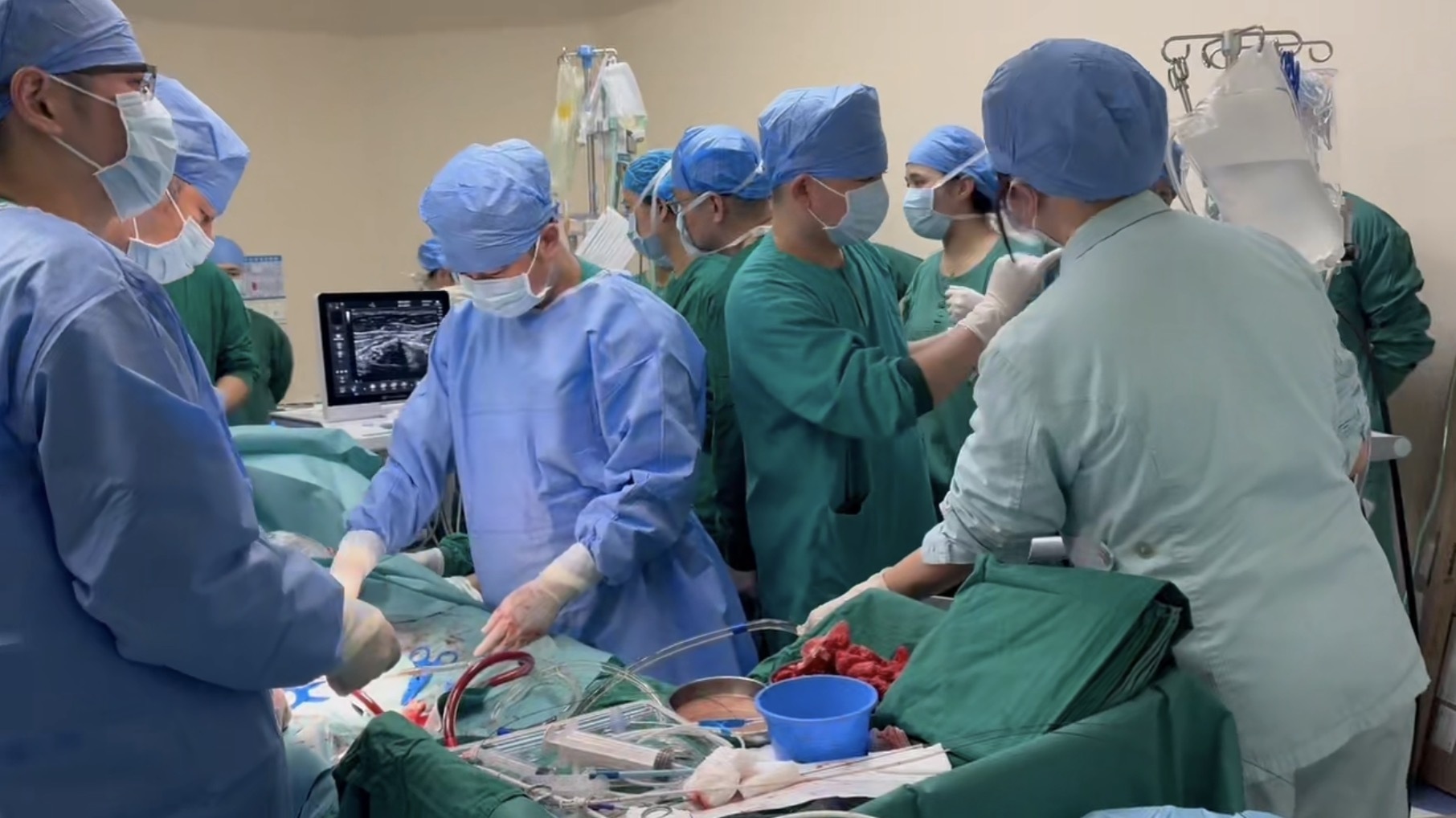 手术现场,ECMO管路顺利置管上机。