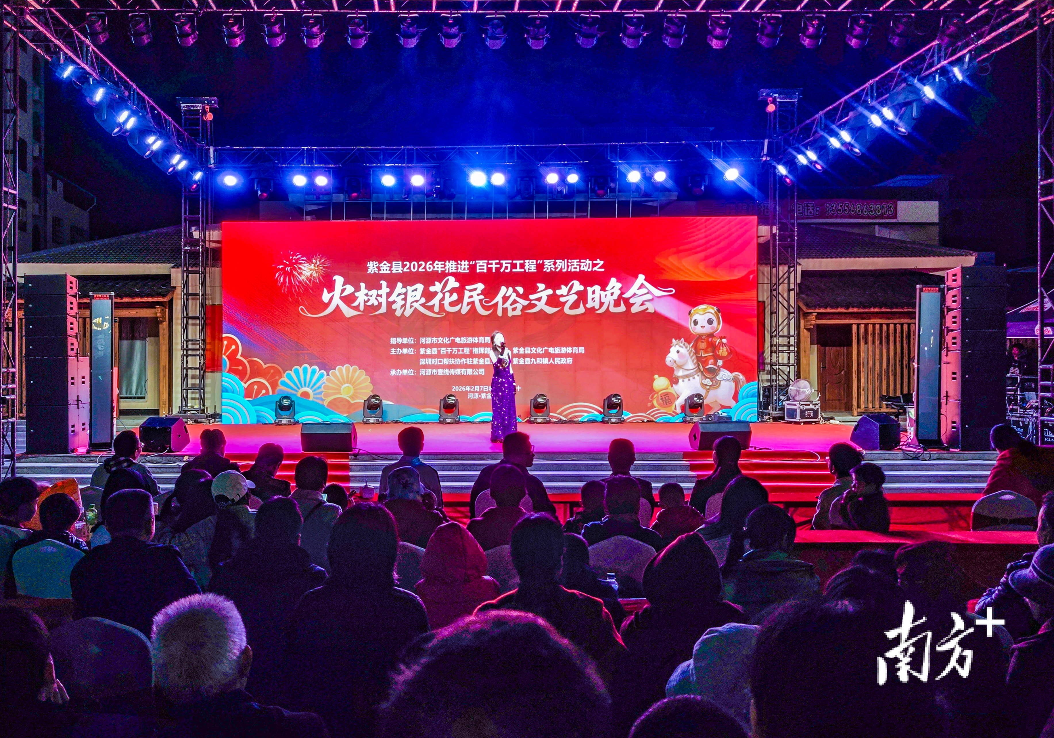 晚宴结束后,“火树银花”民俗文艺晚会在璀璨灯光中上演。晚会节目融合了传统与现代,既有客家山歌对唱、采茶戏选段等非遗展示,也有反映乡村振兴新貌的原创歌舞。节目间隙,还设置了互动环节,让游客进一步了解客家年俗。晚会现场掌声雷动,不少观众举起手机记录精彩瞬间。