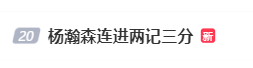 杨瀚森出战17分钟,投篮8中5、罚球4中4砍下16分4篮板1助攻3盖帽。其中第三节投篮5中5,罚球2中2砍下14分2篮板1助攻1盖帽。