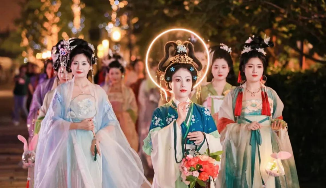组织汉服巡游活动,嫦娥、吴刚、玉兔、后羿等神话人物将“降临”茶山送福,“古人”穿越千年展示中国传统文化。