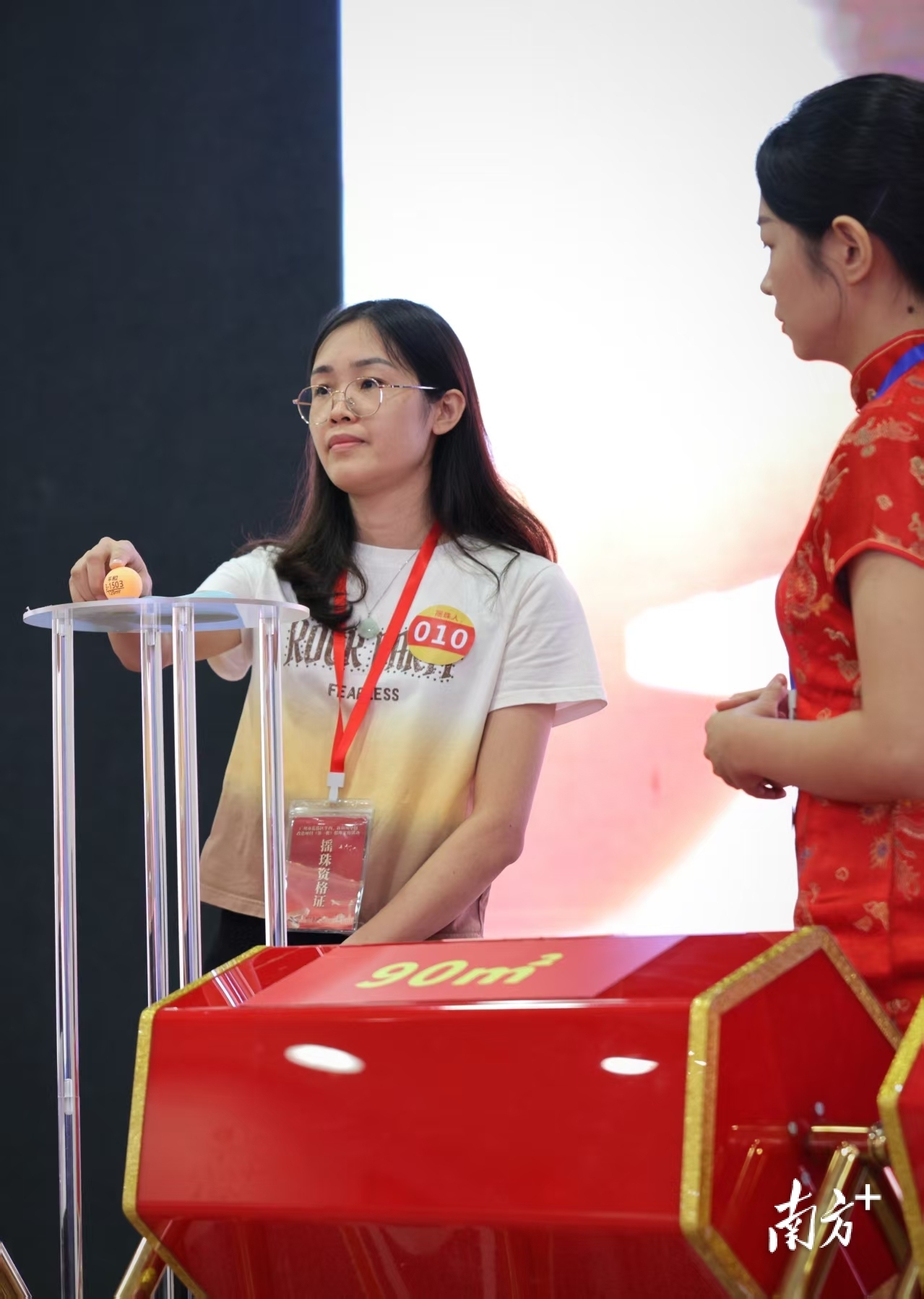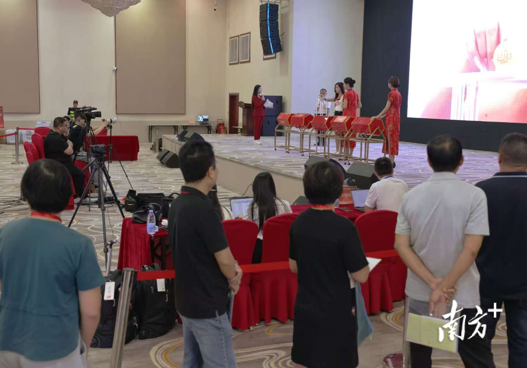 9月25日下午,美东会展中心内人头攒动。签约村民携带身份证、《摇珠资格证》等材料,参与摇珠活动。现场设有不同户型的电子销控屏,广州市花都公证处全程监督公证,广州金鹏律师事务所全程见证,花都区融媒体中心工作人员全程拍摄记录取证,确保“一房一珠”透明公正分配。
