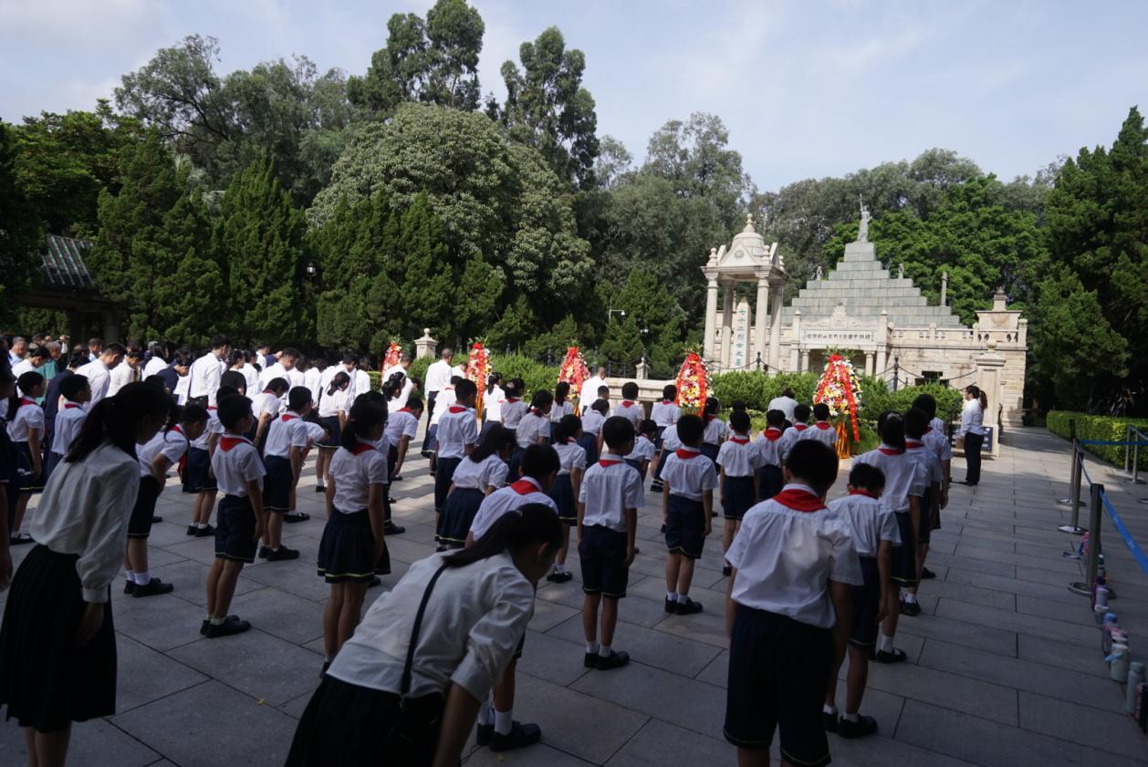 烈士陵园松柏苍翠,纪念碑巍然耸立,现场庄严肃穆。上午9时30分,在黄花岗七十二烈士墓园举行2025年“鲜花献烈士”9·30烈士纪念日主题纪念活动,广州市退役军人事务局、黄花岗七十二烈士墓园、烈士后人、同盟会广州后裔联谊会、先烈中路小学师生约200人参加活动。现场人员集体肃立、默哀,向烈士敬献花篮,整理缎带。全体人员面向烈士墓行鞠躬礼,依次缓步绕墓瞻仰,追思革命先烈的丰功伟绩。