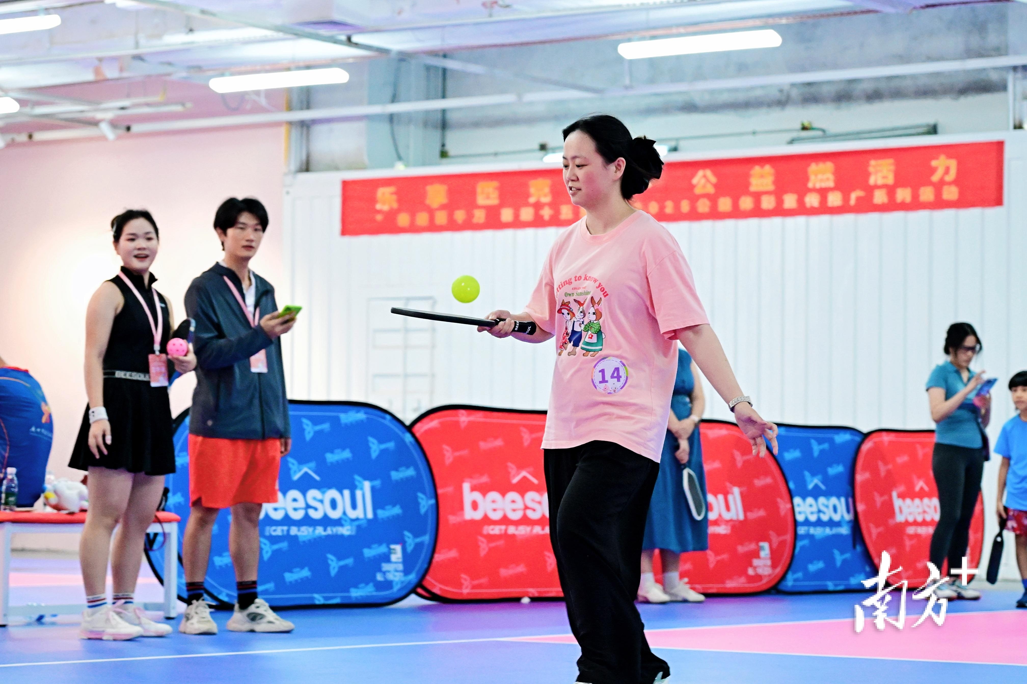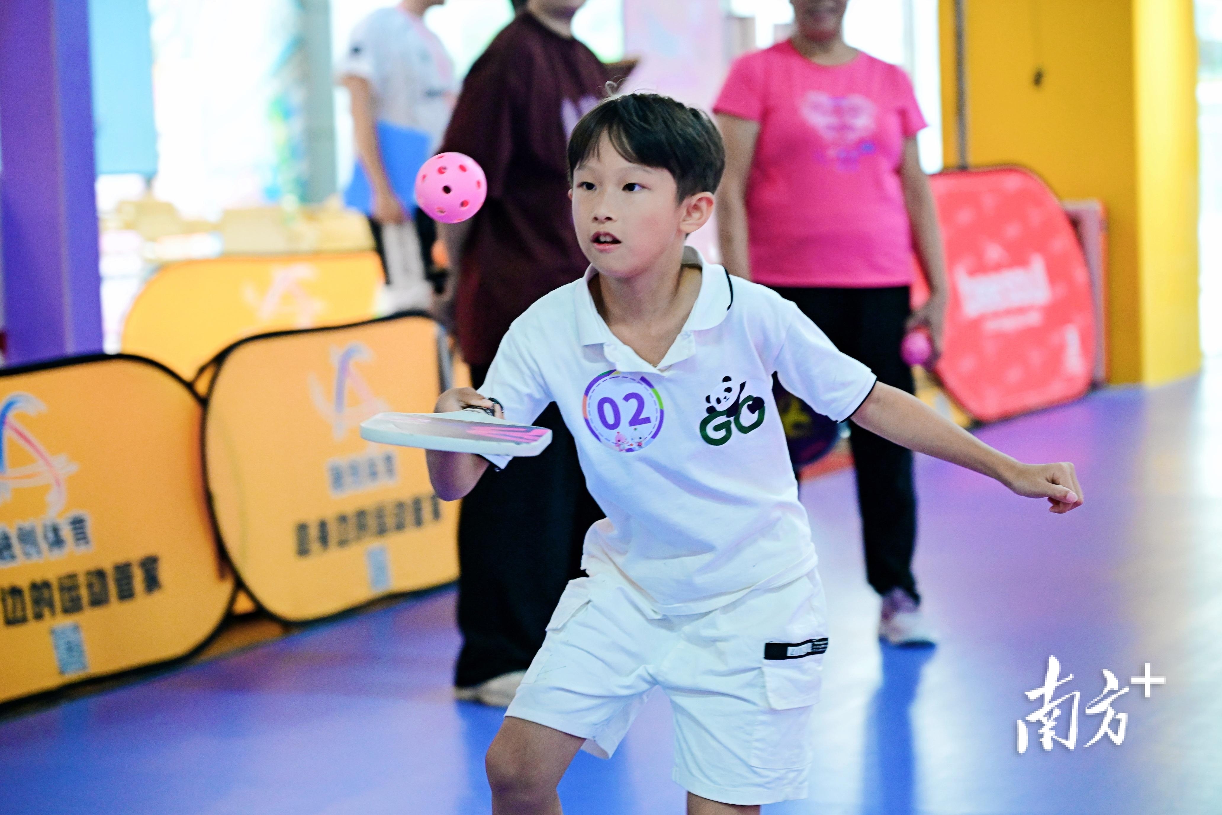 在互动体验环节,5岁的乐乐在教练手把手的帮助下,挥拍击出了人生第一个匹克球,兴奋地跳跃起来;带着父母一同参与的王女士激动地表示:“第一次接触就爱上了这项运动,它简单易学,对各个年龄段都很友好。”