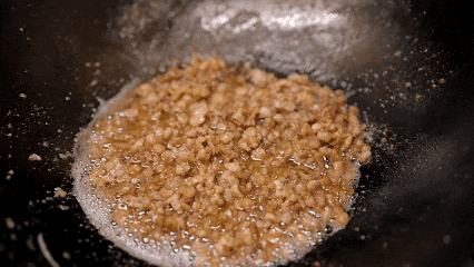 依次加入腐竹、瘦肉、虾米、蒜苗等食材翻炒