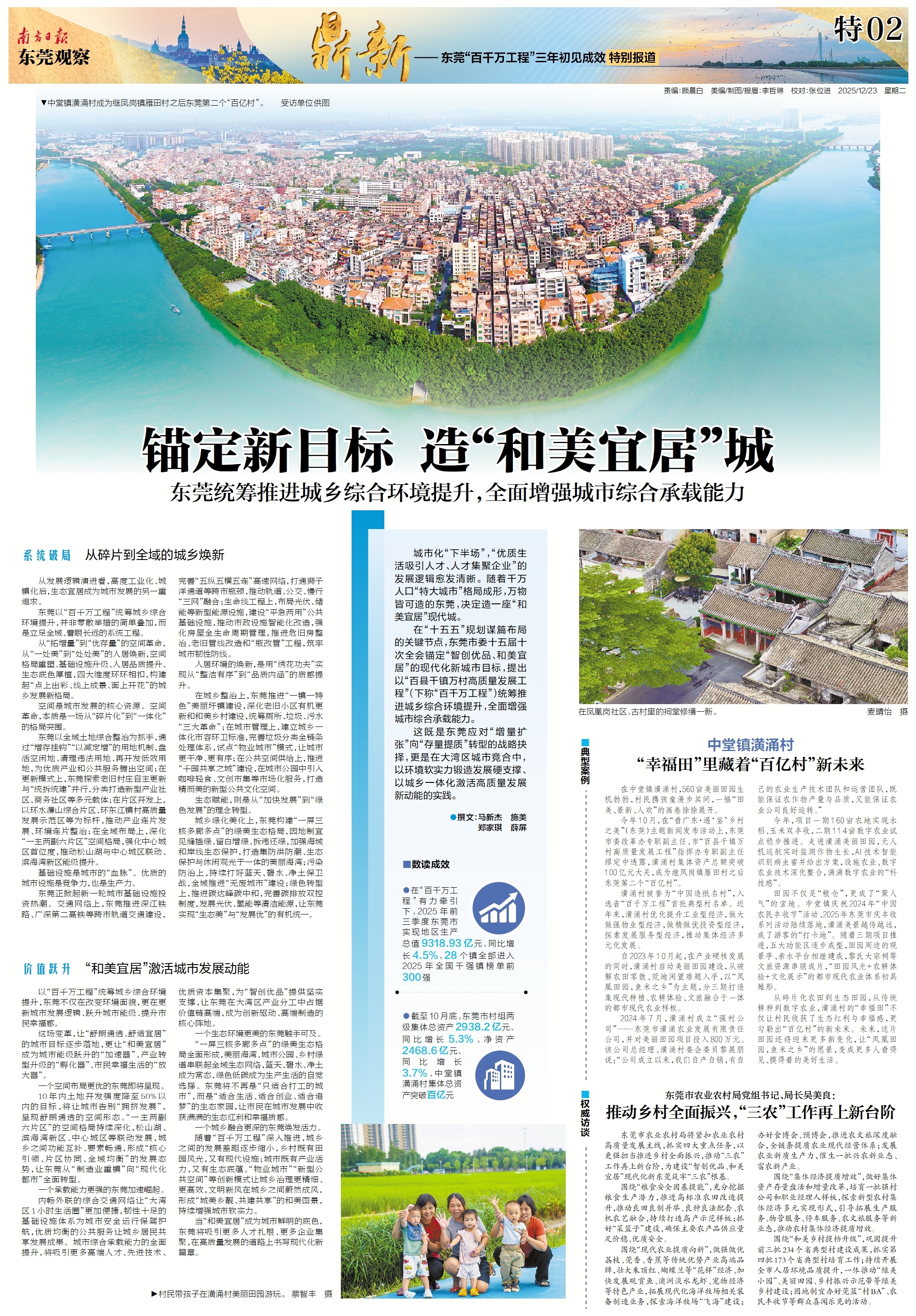 刚刚过去的市委全会上,东莞提出“智创优品、和美宜居”的城市发展战略目标,加快建设现代化新东莞。“百县千镇万村高质量发展工程”实施三载,为建设“智创优品、和美宜居”的现代化新东莞,写下了铿锵有力的现实注脚,更奠定了鹏程万里的事业起点。