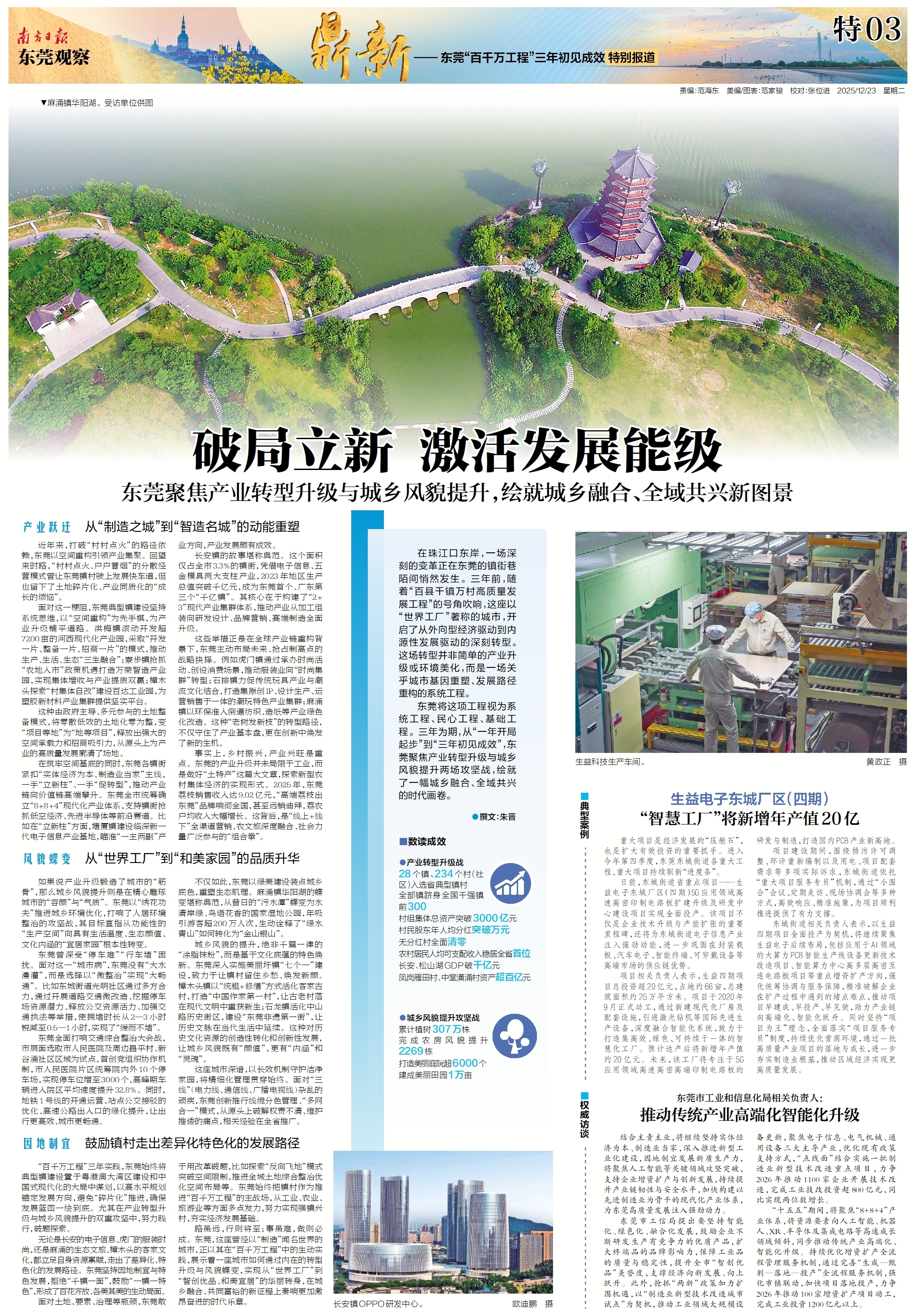今日,南方日报策划推出《鼎新——东莞“百千万工程”三年初见成效特别报道》,聚焦东莞以“百千万工程”为统筹,绘就城市高质量发展和人民美好生活的新蓝图。